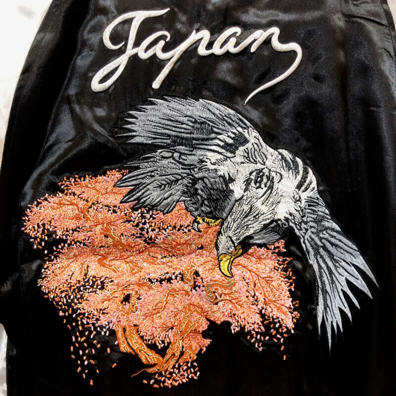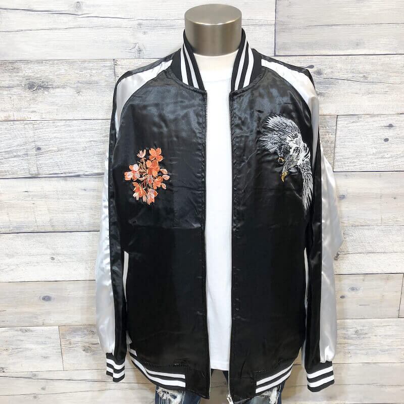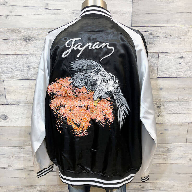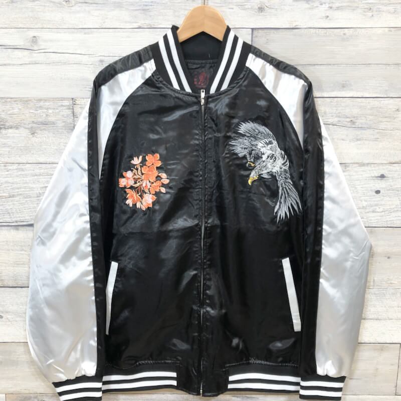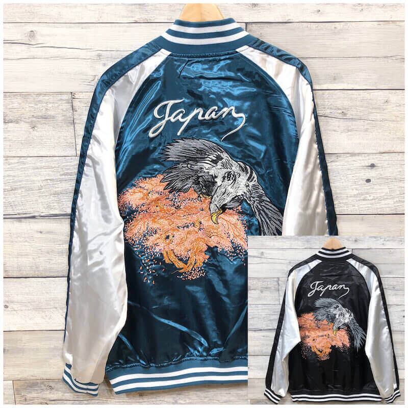 タカのバック刺繍がクールなスカジャン