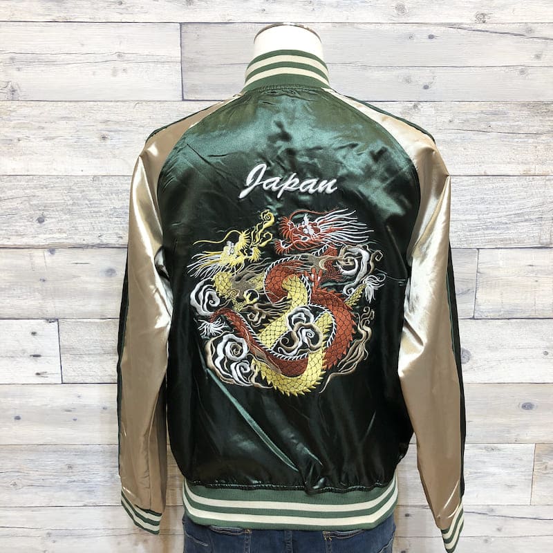【送料無料】メンズ スカジャン ツイン ドラゴン 龍 竜 和柄 ブルゾン アウター 双龍 双竜 アメカジ 和柄 JAPAN 日本 ジャパン 刺繍 ジャンパー 東洋 横須賀 希少グリーン レッド ネイビー ブラック | DEF STORE