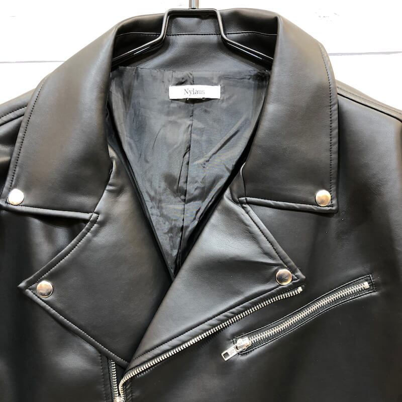 しっとりとした質感の良いフェイクレザー(合成皮革)を使用したダブルライダースジャケット。