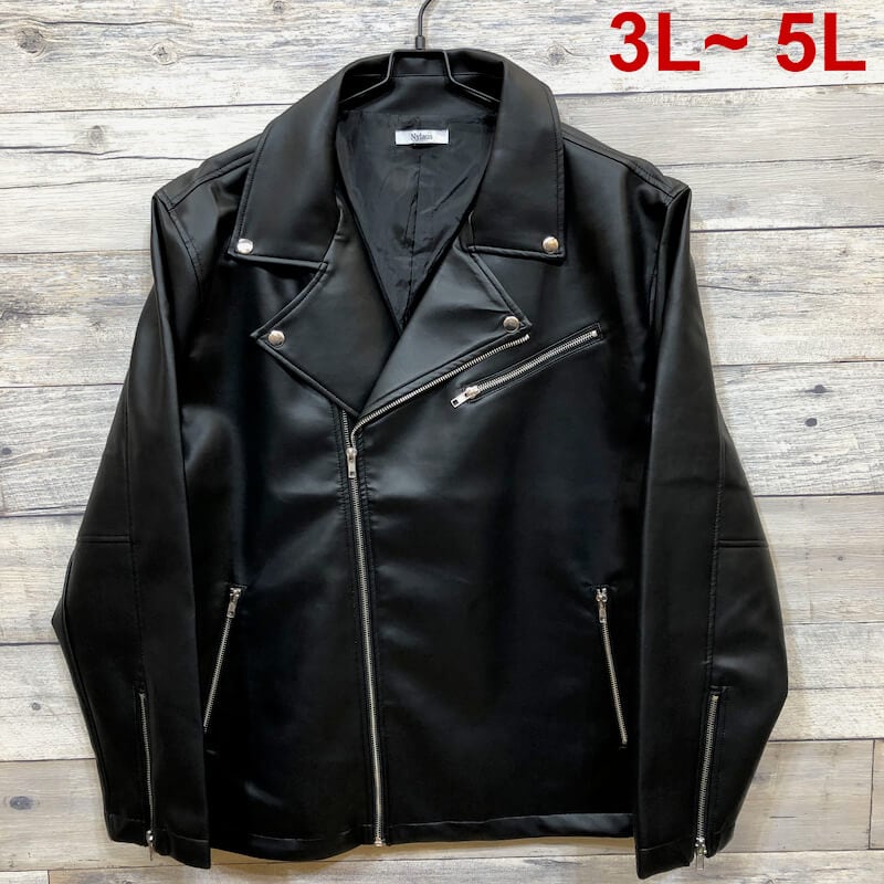 【送料無料】大きいサイズ メンズ ダブル ライダース ジャケット 3L 4L 5L フェイク レザー ジップ ブルゾン ブラック 黒 アウター 革ジャン アウター キングサイズ ビッグサイズ XXL 2XL3XL 4XL バイカー バイク エコレザー 合皮 ストリート カジュアル ロック ゆったり