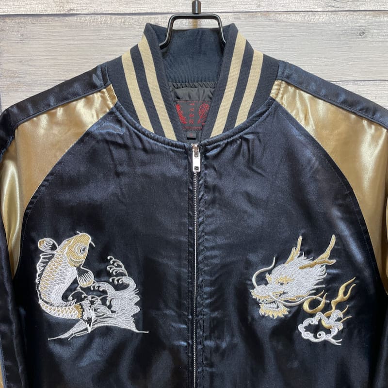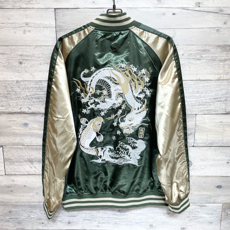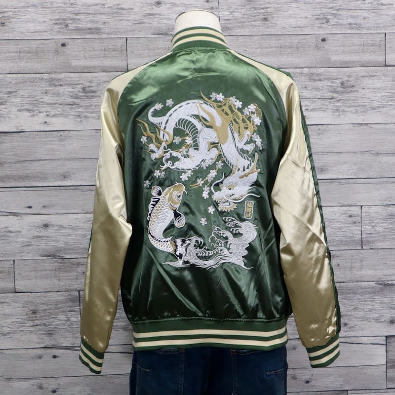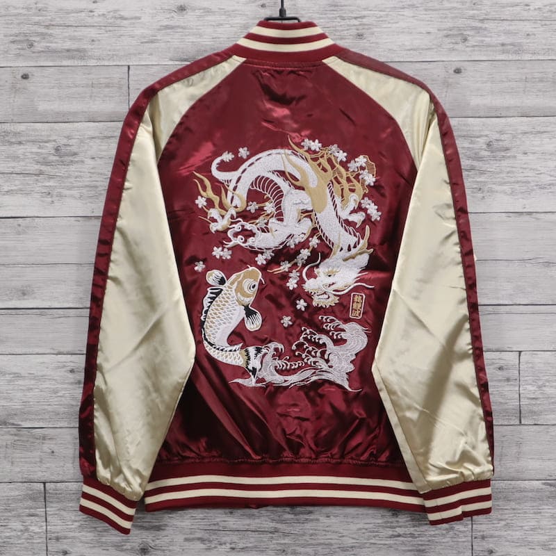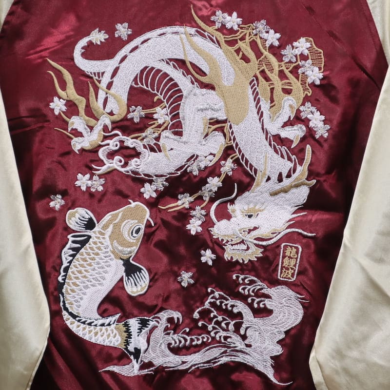 ドラゴンと鯉の刺繍がクールなスカジャン