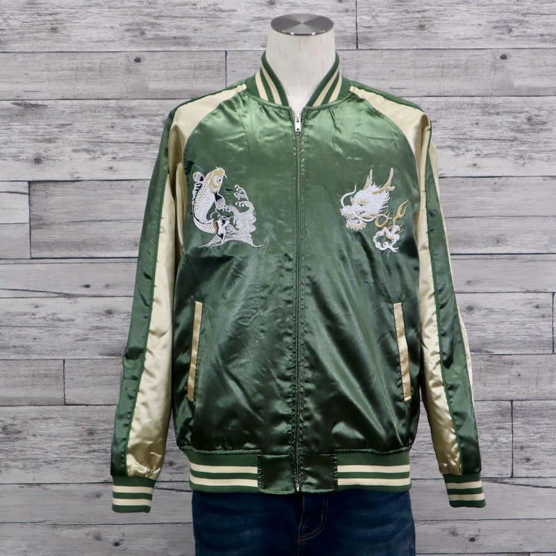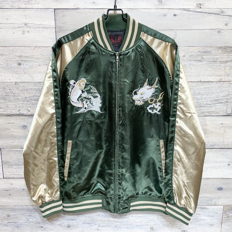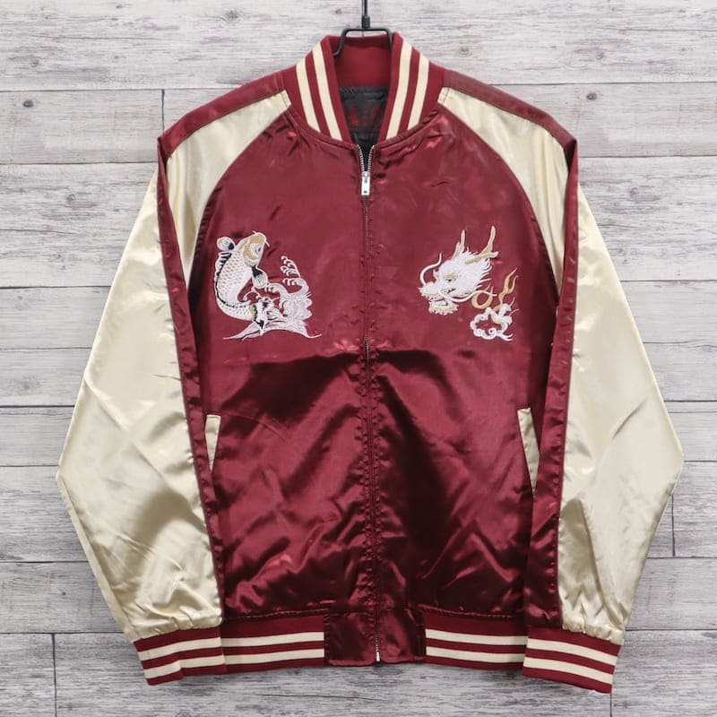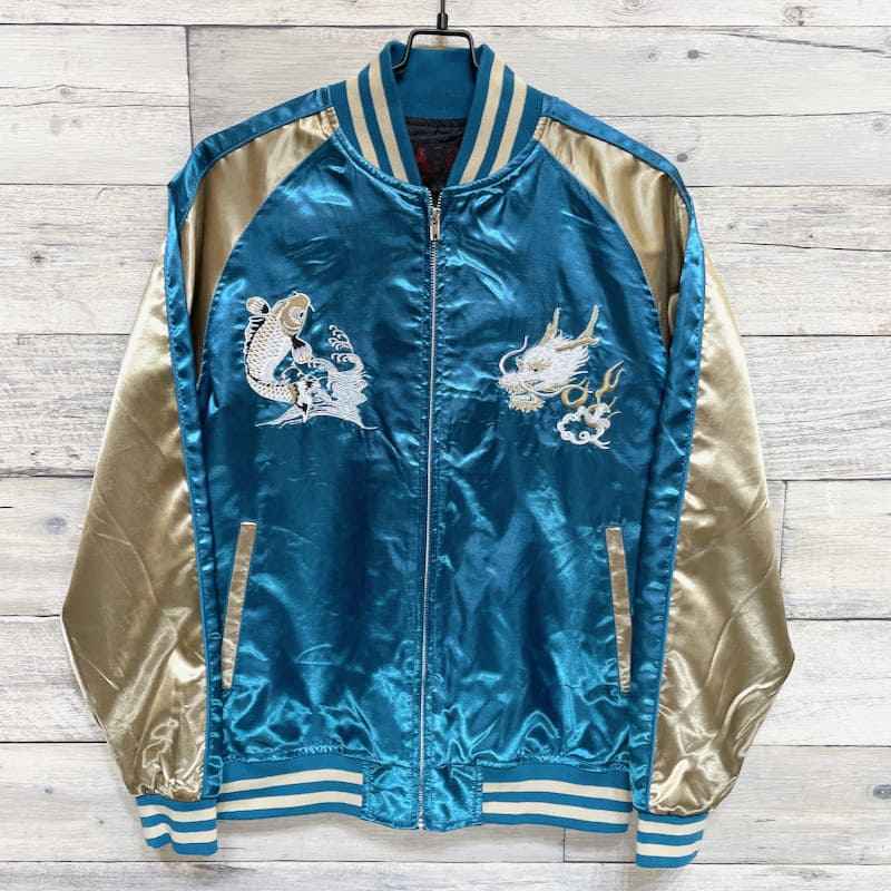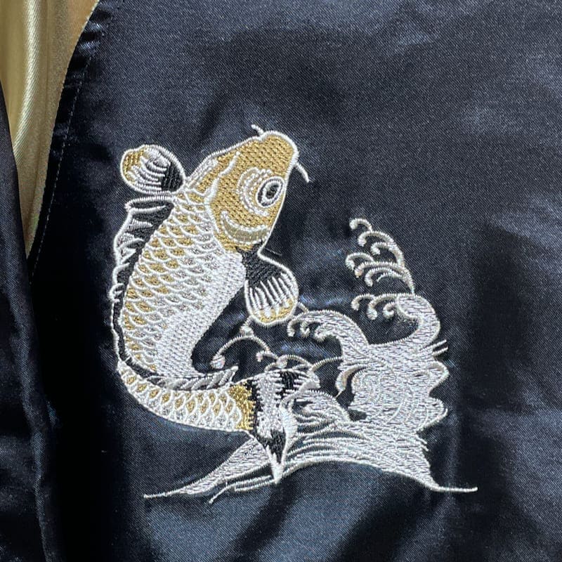ドラゴンと鯉の刺繍がクールなスカジャン
