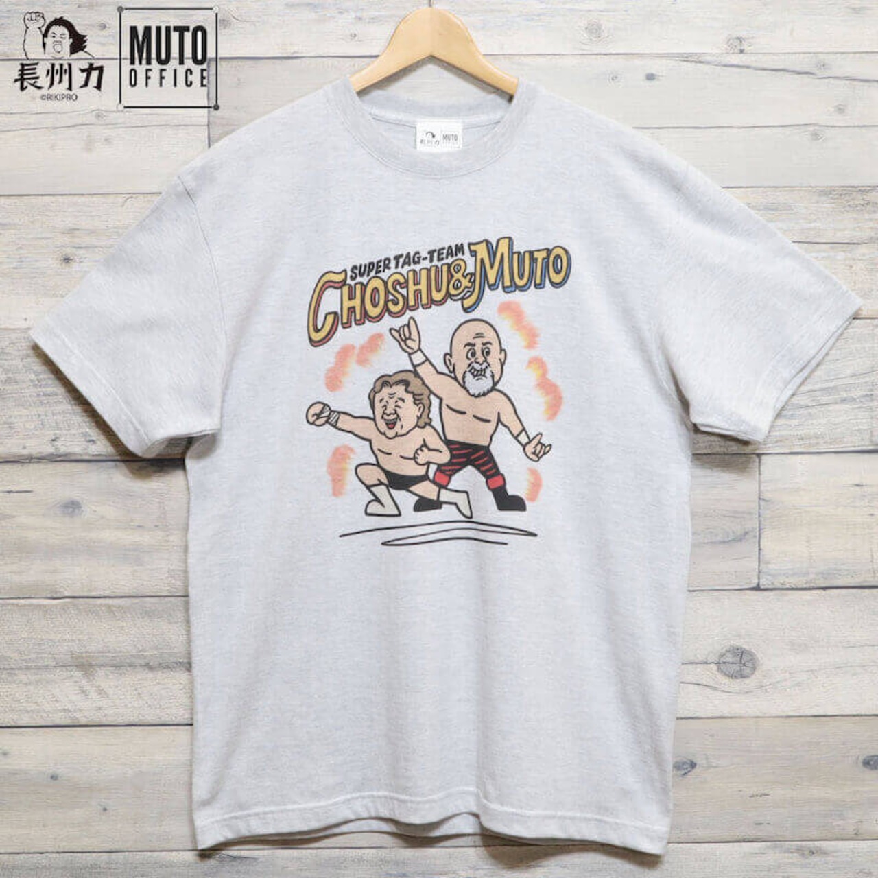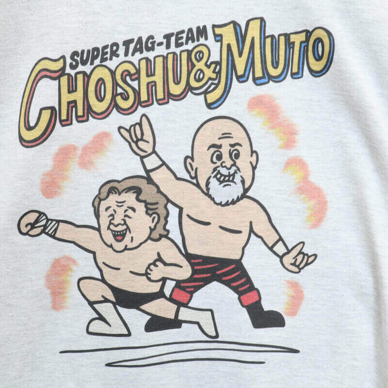 【即納】メンズ 長州力 武藤 敬司 コラボ プロレス 半袖 Tシャツ プリント 半袖Tシャツ ティーシャツ 新日本プロレス 革命戦士 飛ぶぞ ユニセックス レディース コットン 綿 白杢 オートミール ミックスグレー タッグチーム