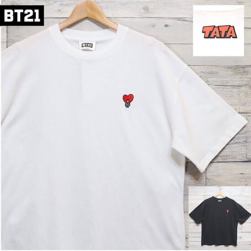 【送料無料】BT21 BTS 半袖 Tシャツ ティーシャツ 半袖Tシャツ TATA タタ ハート V テテ 刺繍 公式 グッズ LINE キャラクター レディース メンズ ユニセックス 白 ホワイト 黒 ブラック