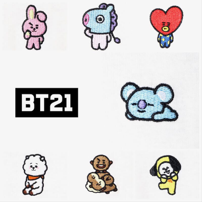 大人気のBT21の公式グッズ、ワンポイント刺繍Tシャツです。