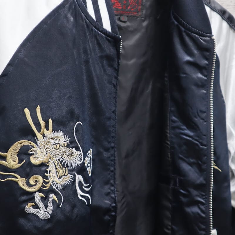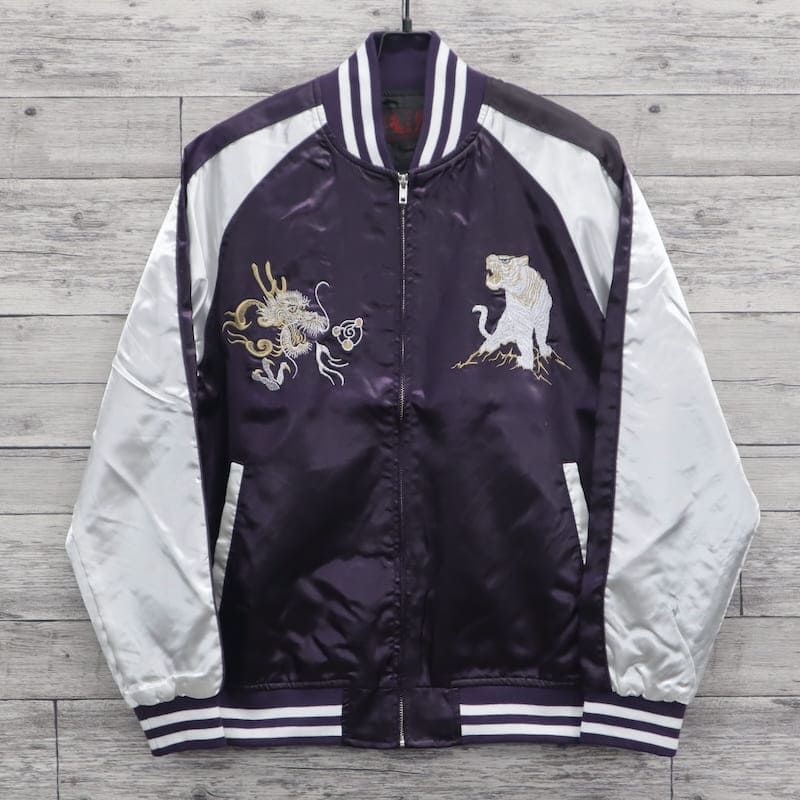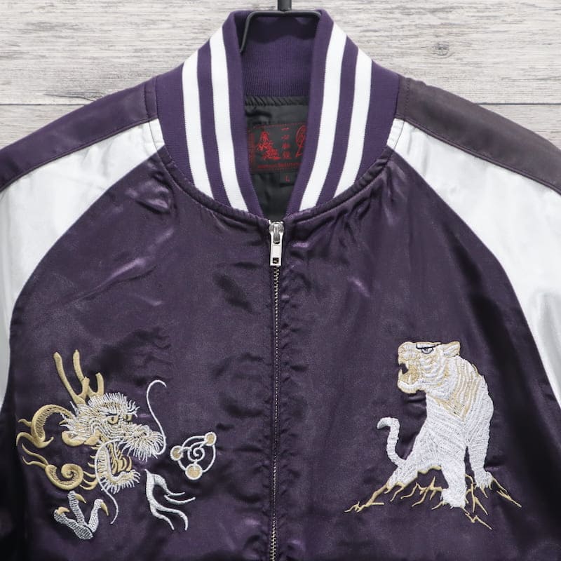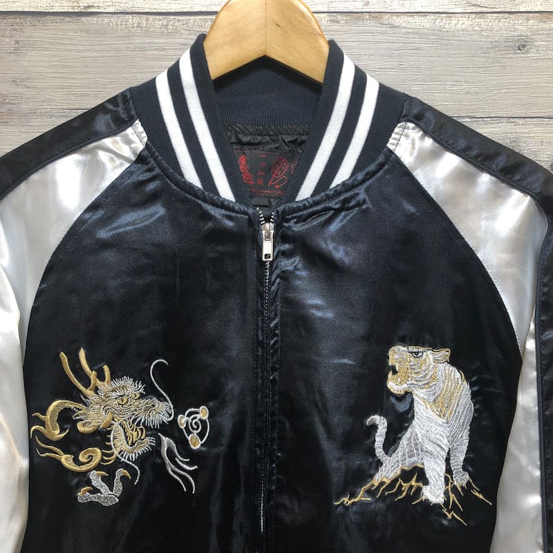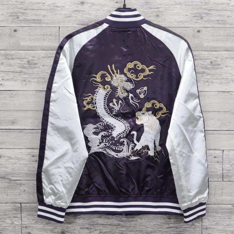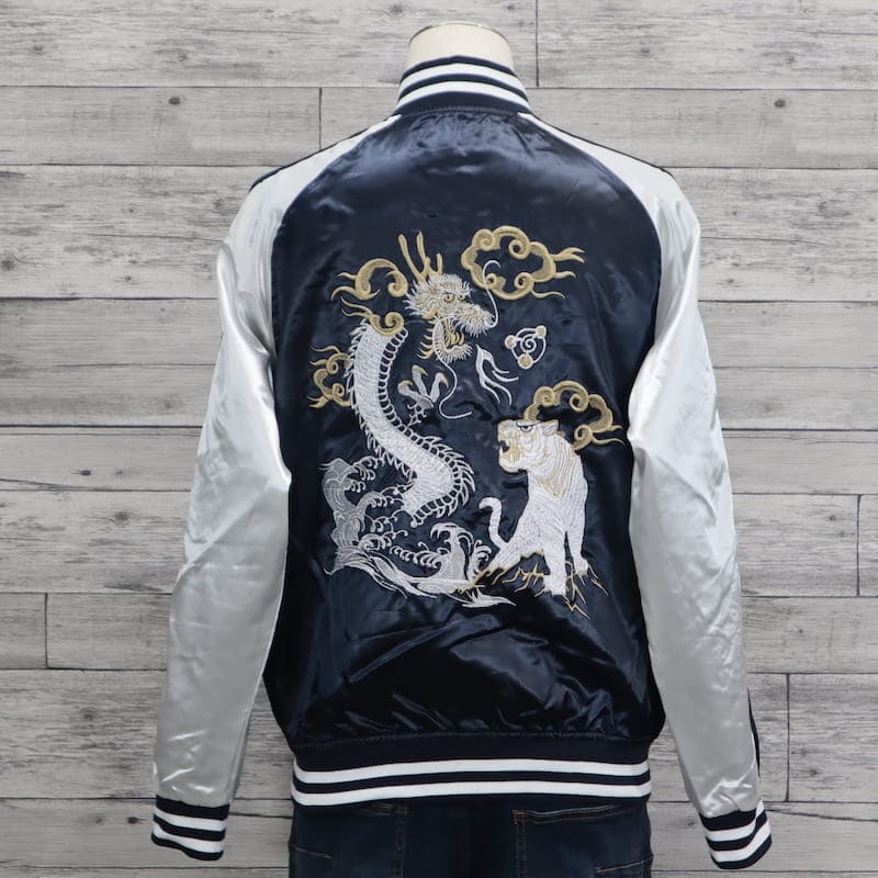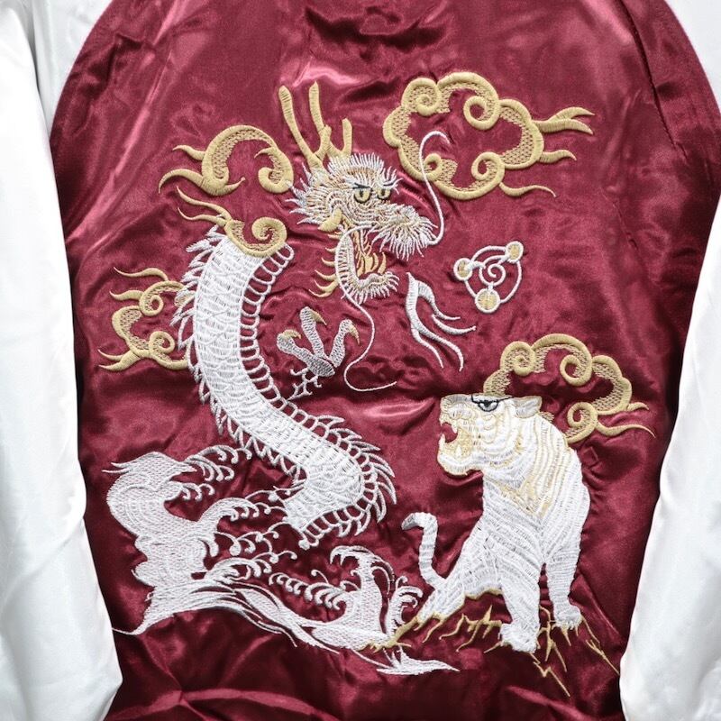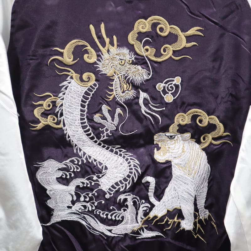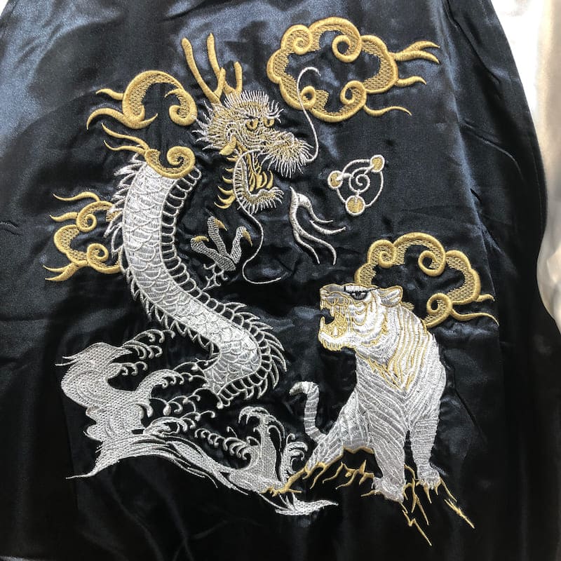 迫力ある龍と虎の総刺繍が印象的な1着。