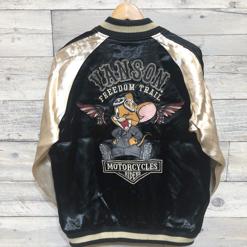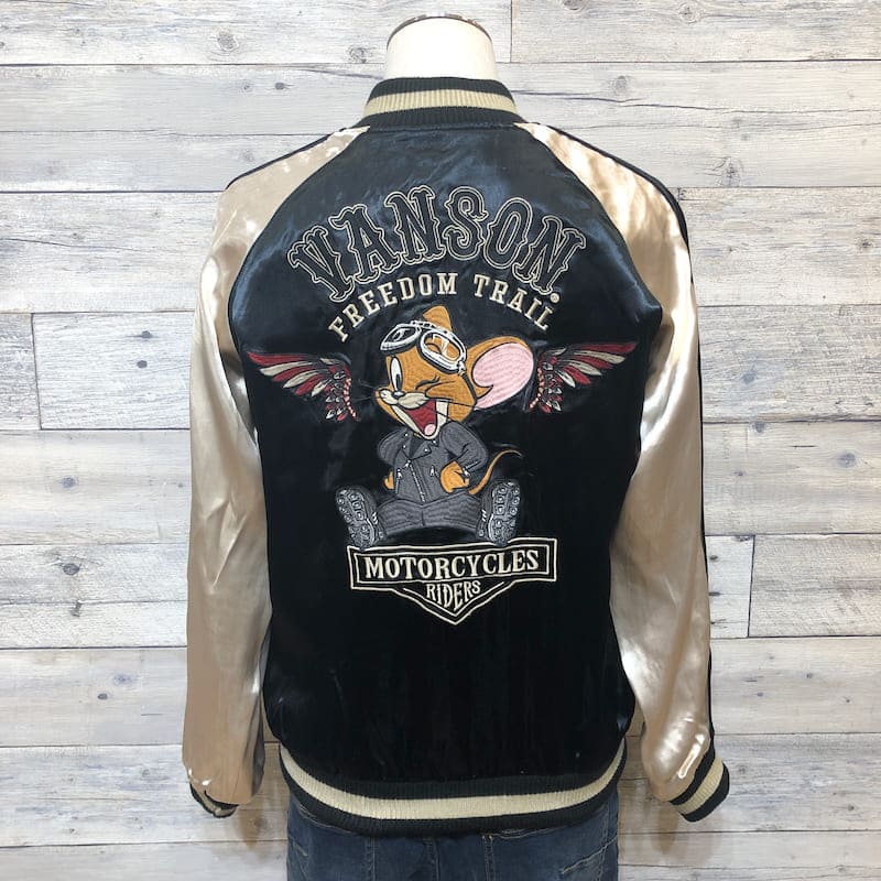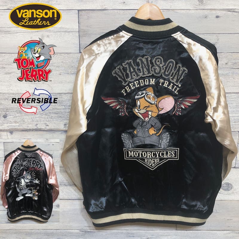 【送料無料】メンズ バンソン VANSON トムとジェリー トムジェリ TOM & JERRY コラボ スカジャン ブルゾン アウター スーベニアジャケット リバーシブル 刺繍 ユニセックス レディース M L LL ピンク 黒 ブラック