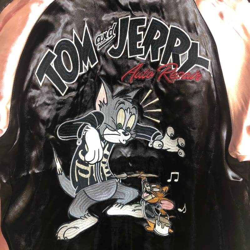 絶大な人気のキャラクター トムとジェリーとのコラボレーション、総刺繍のリバーシブルスカジャンです。