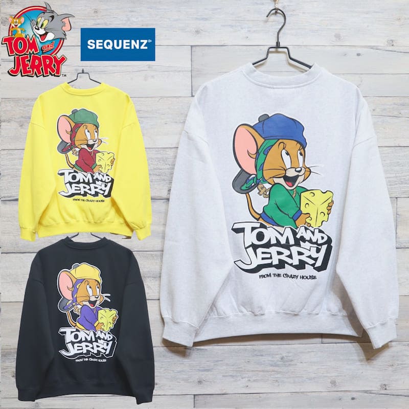 【送料無料】メンズ トムとジェリー SEQUENZ シークエンズ 長袖 トレーナー スウェット バックプリント 裏起毛 キャラクター レディース ユニセックス トム