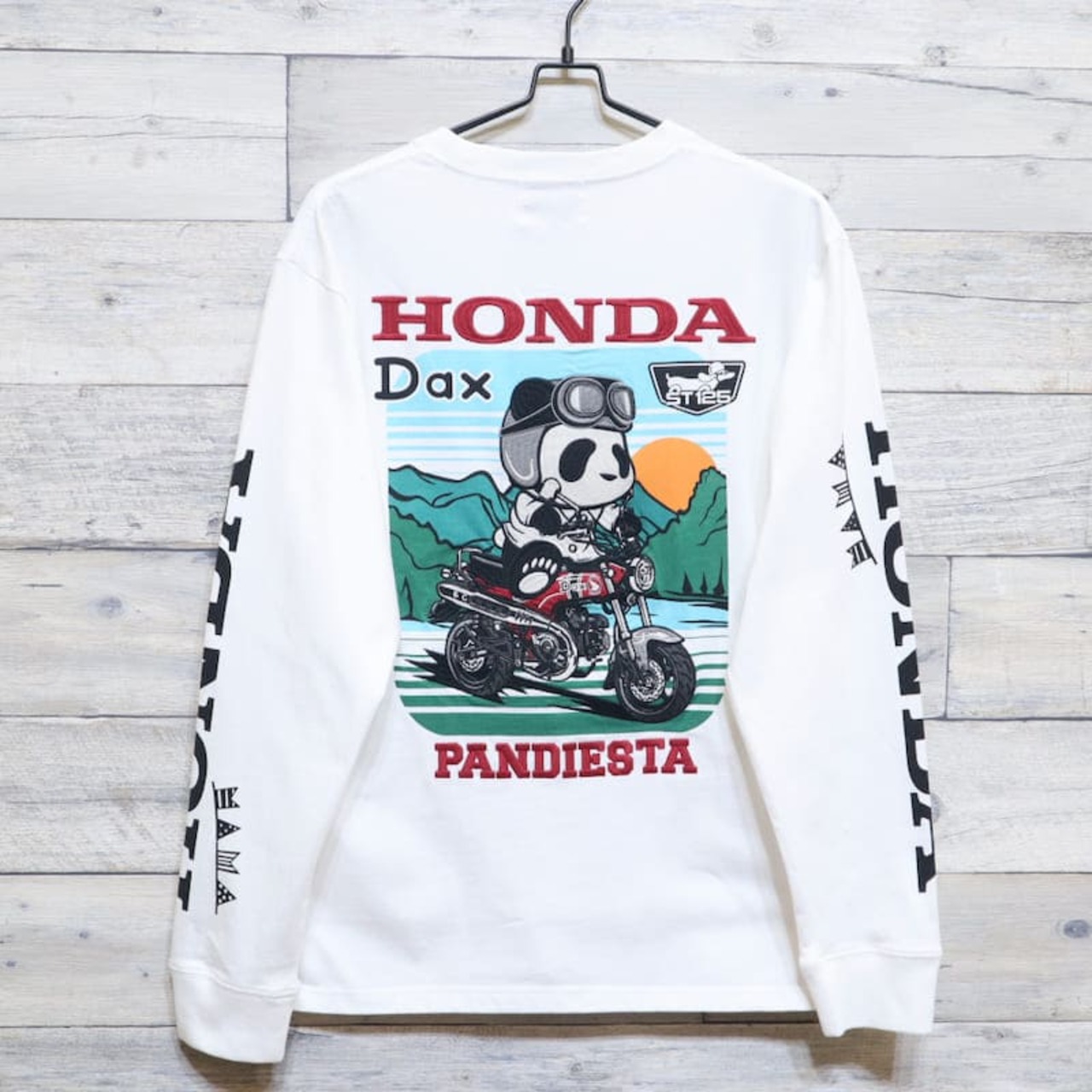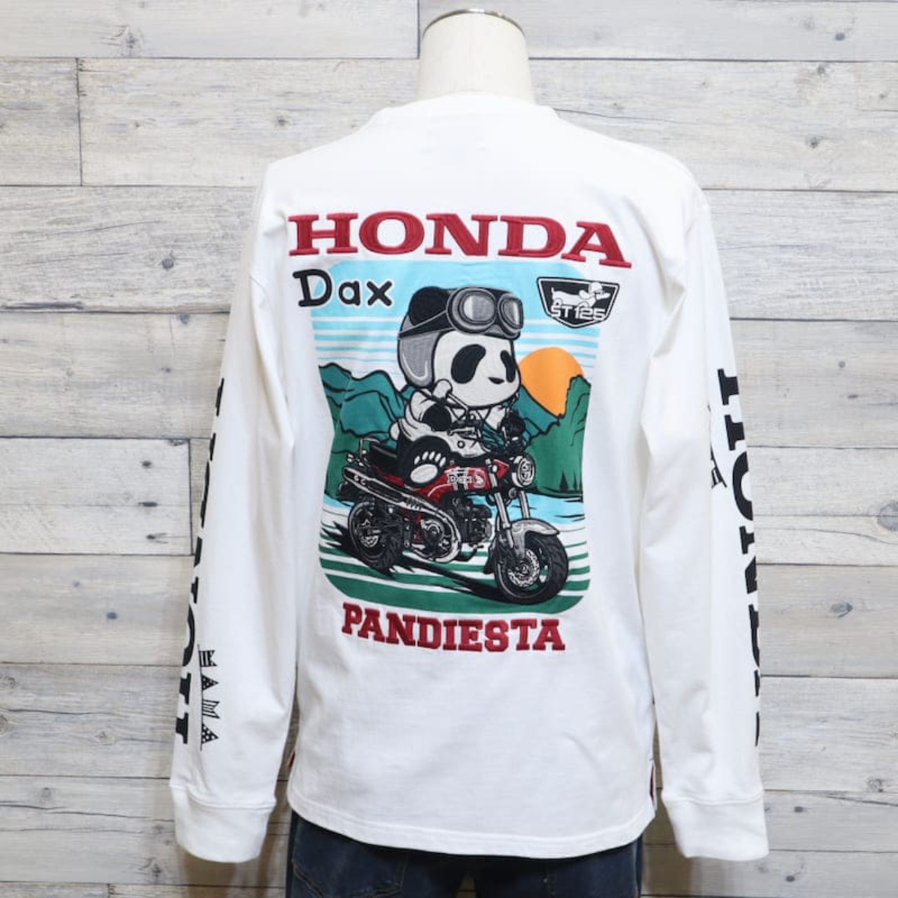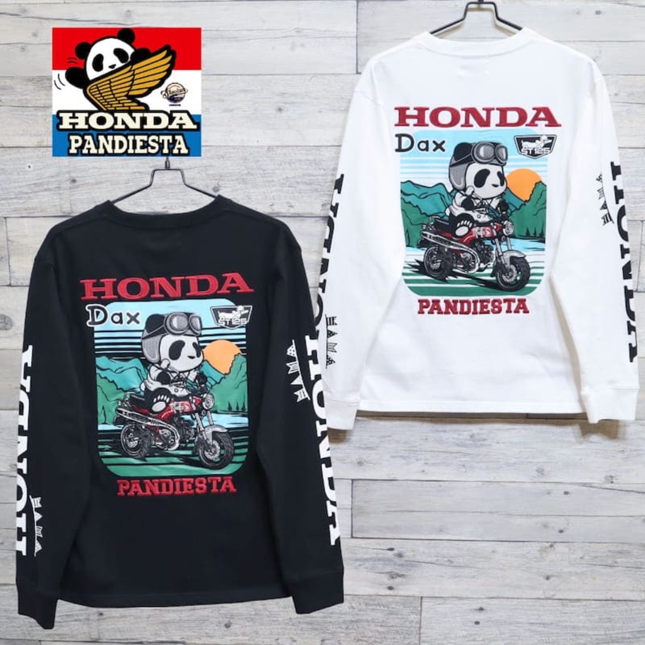 【送料無料】メンズ パンディエスタ PANDIESTA ホンダ HONDA コラボ 長袖 Tシャツ ロンT DAX ダックス ST125 バイク 刺繍 プリント パンダ ユニセックス 白 ホワイト 黒 ブラック