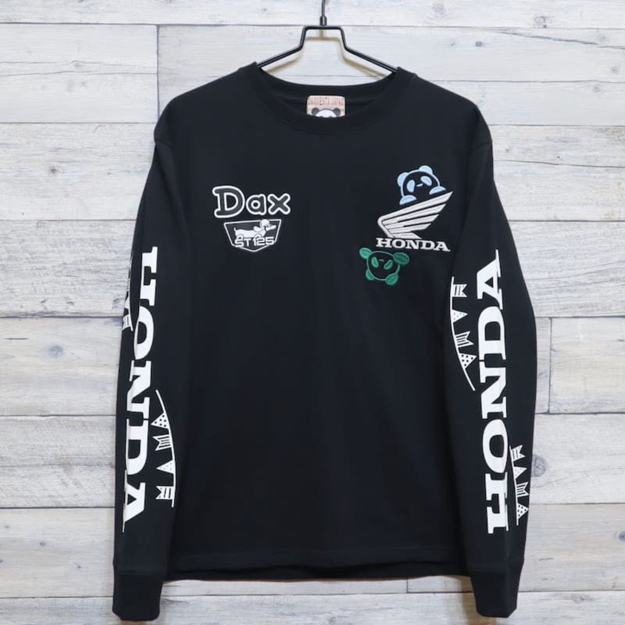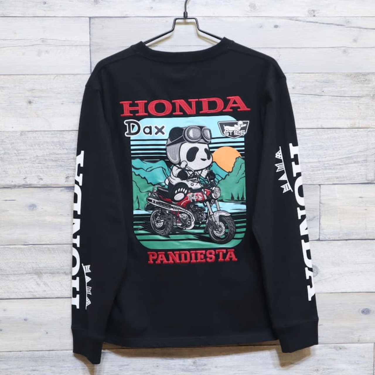 【送料無料】メンズ パンディエスタ PANDIESTA ホンダ HONDA コラボ 長袖 Tシャツ 長袖Tシャツ ロンT DAX ダックス ST125 バイク 刺繍 プリント パンダ ユニセックス 白 ホワイト 黒 ブラック
