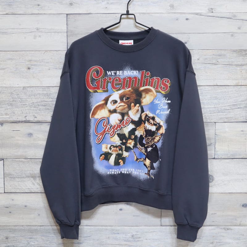 ギズモをはじめとするキャラクターたちが集合したグラフィックプリントトレーナー。