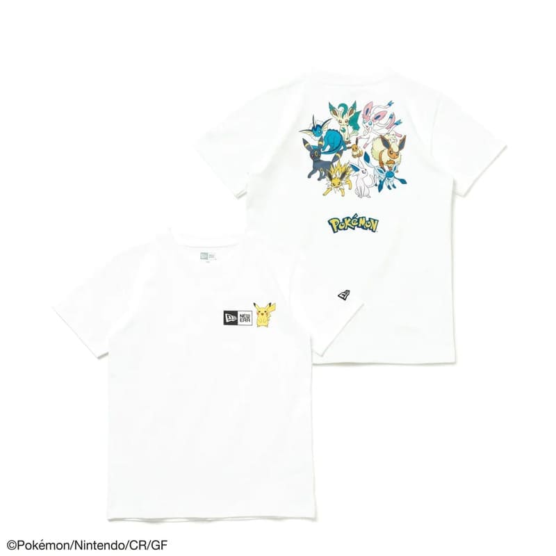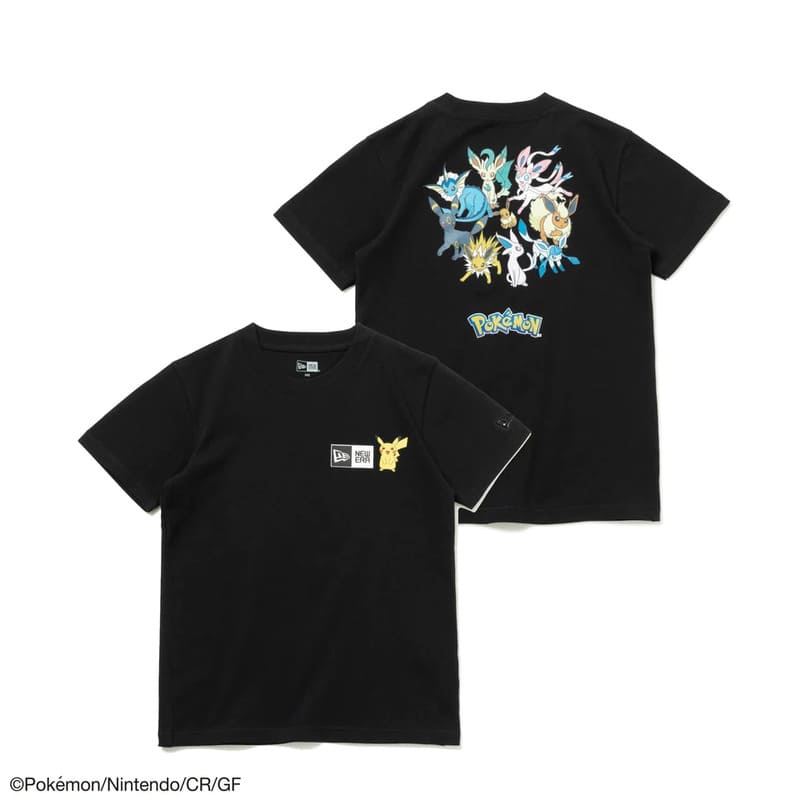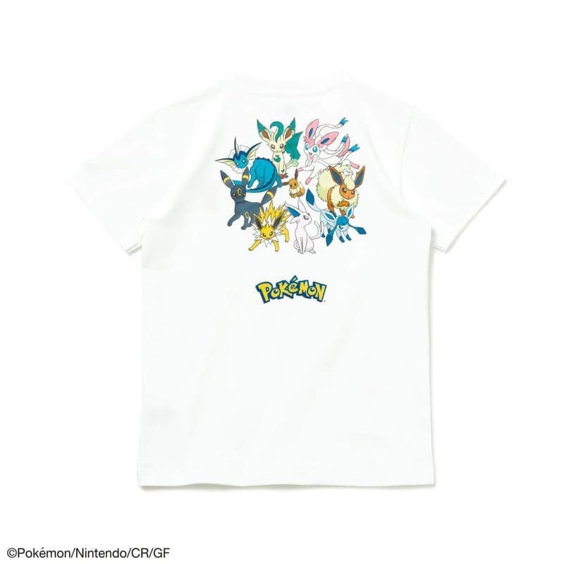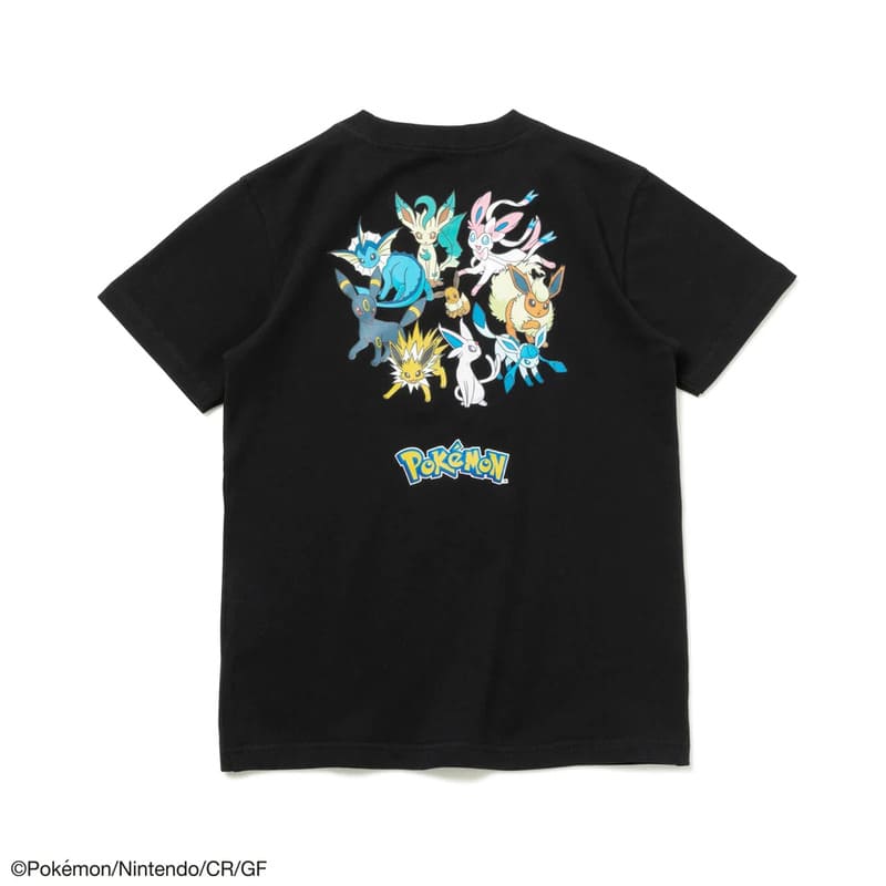 フロントはボックスロゴとピカチュウを、背面はイーブイとその進化形をフィーチャーしたデザイン。