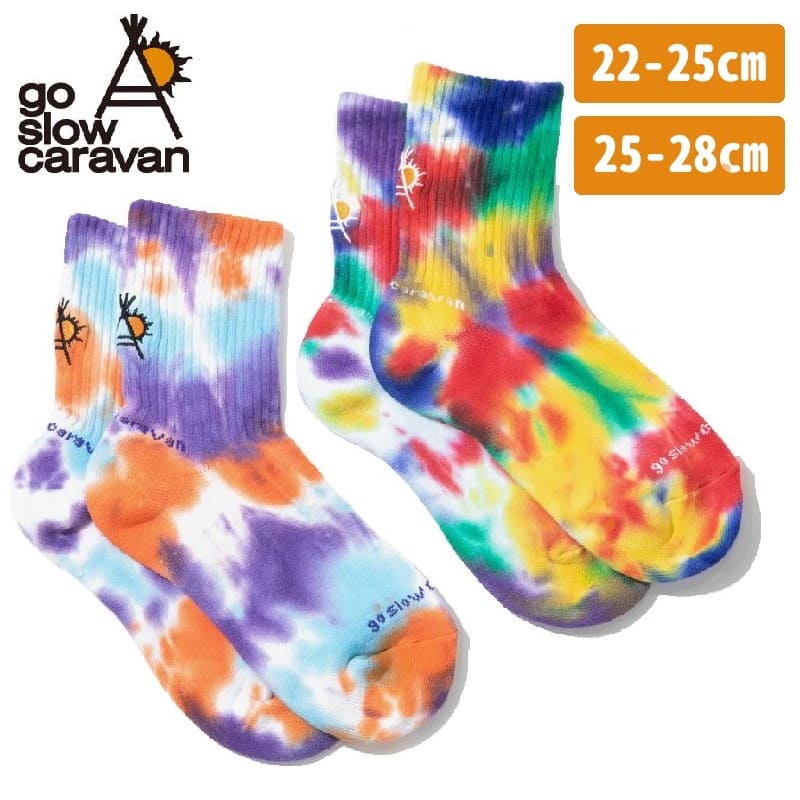 【送料込】ゴースローキャラバン go slow caravan ソックス 靴下 タイダイ 絞り染め カラフル マルチカラー ワンポイント 刺繍 ロゴ ユニセックス メンズ レディース ブルー オレンジ