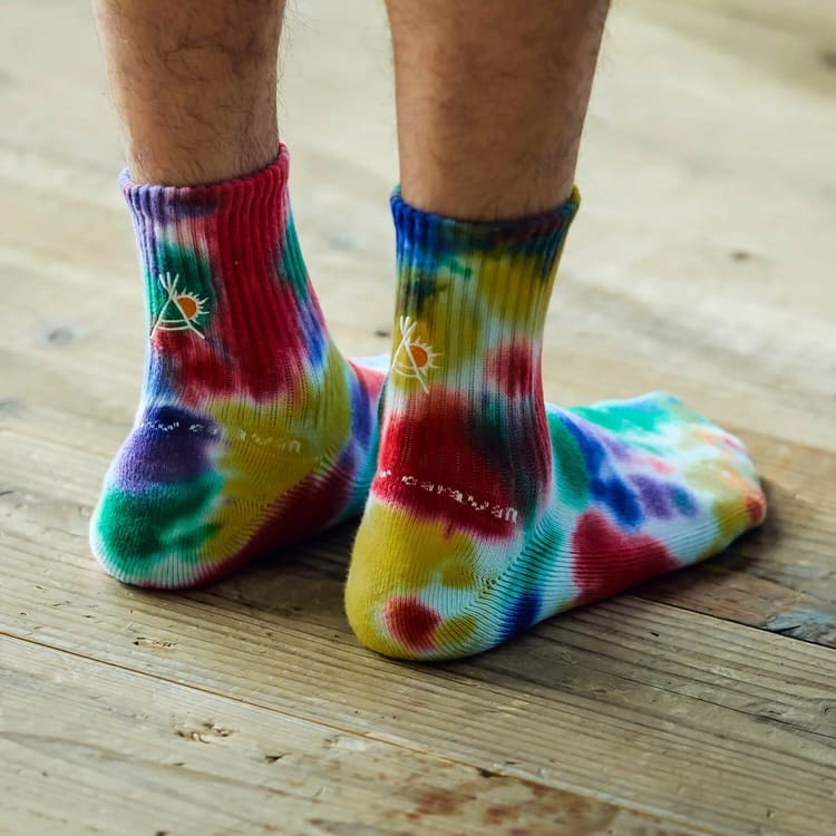 人気アウトドアブランド go slow caravan(ゴースローキャラバン)のオリジナルタイダイソックス。