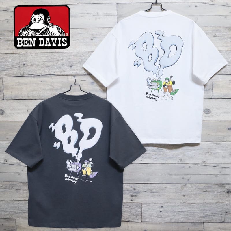 【送料無料】メンズ ベンデイビス BENDAVIS ベン デイビス BEN DAVIS 半袖 Tシャツ 半袖Tシャツ ティーシャツバックプリント 発泡 ロゴ ゴリラ ワイド ユニセックス レディース 白 ホワイト スミクロ グレー チャコール