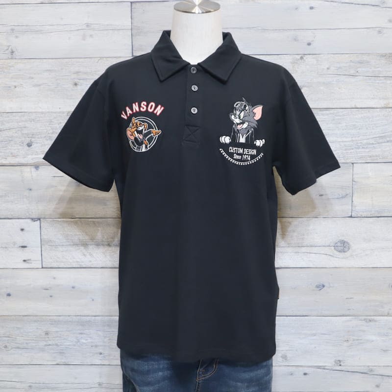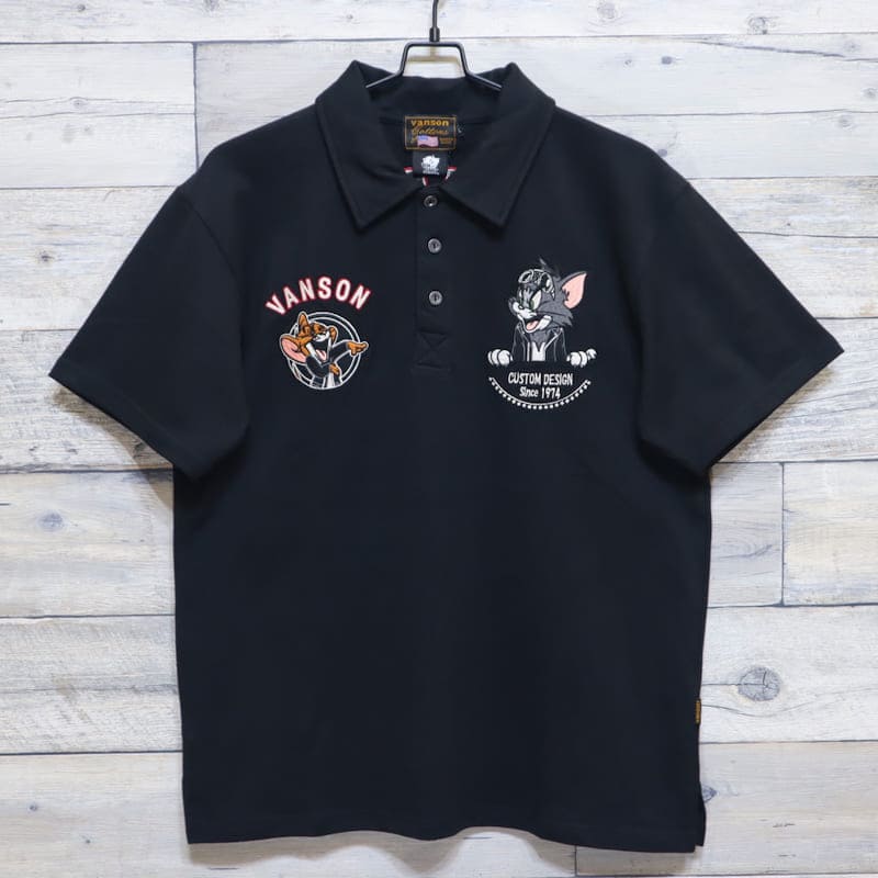【送料無料】メンズ トムとジェリー Tom&jerry トムジェリ VANSON バンソン コラボ 半袖 ポロシャツ 半袖ポロシャツ シャツ 刺繍 Tom トム jerry ジェリー ユニセックス レディース 黒 ブラック