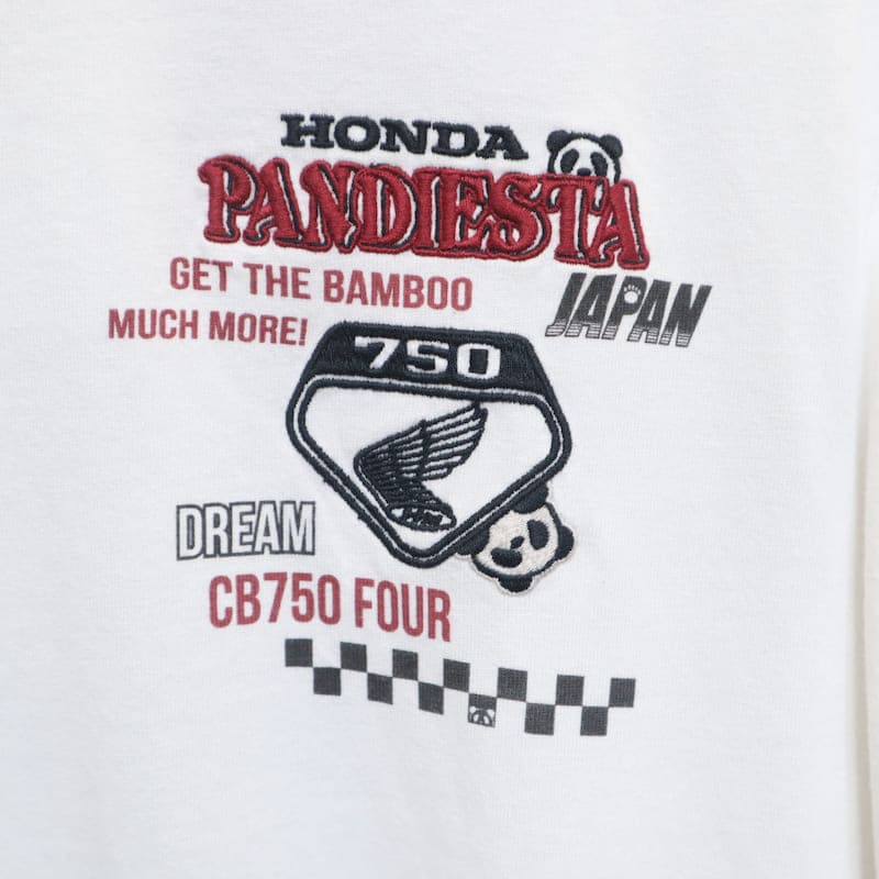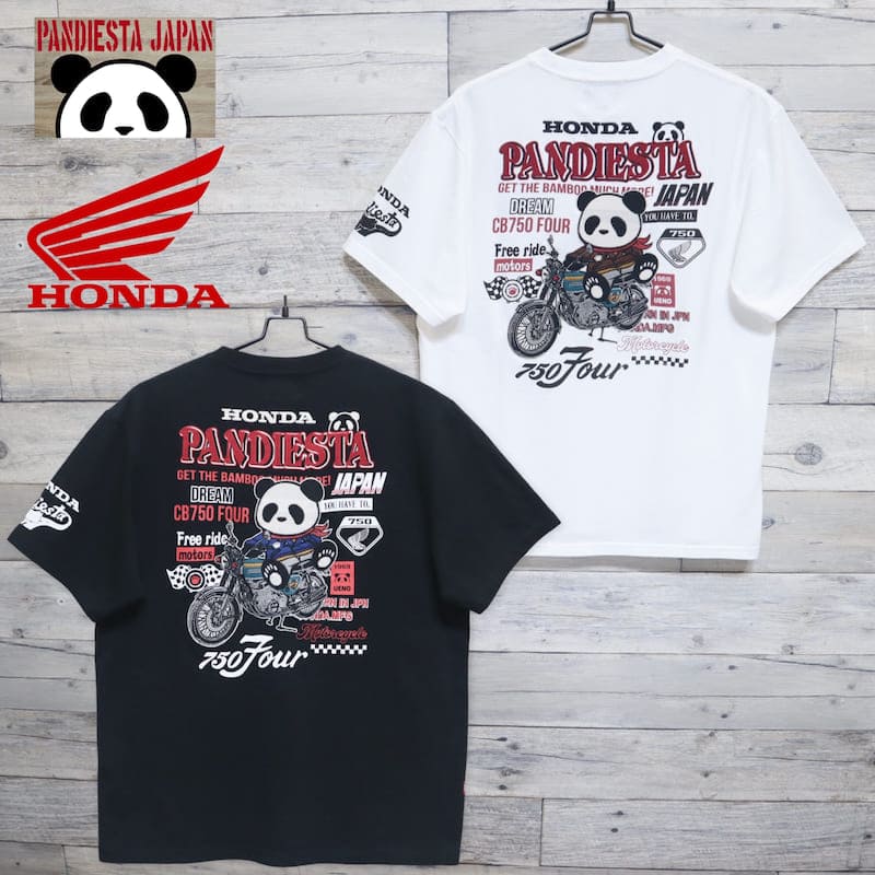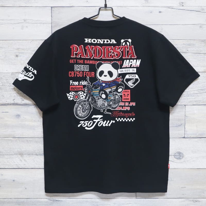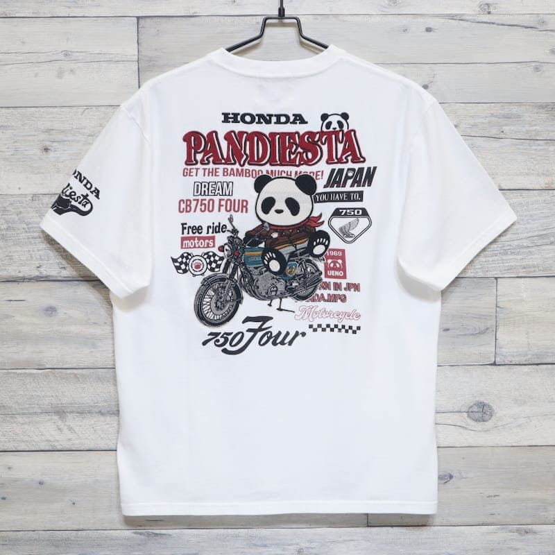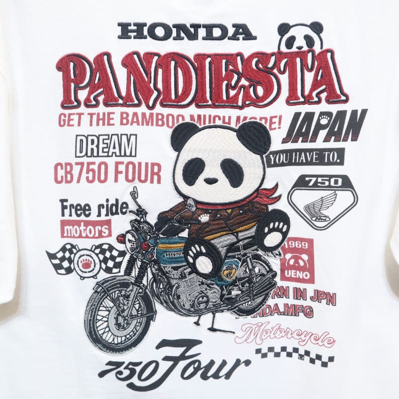 【送料無料】メンズ Honda ホンダ PANDIESTA パンディエスタ コラボ 半袖 Tシャツ 半袖Tシャツ ティーシャツ 刺繍 パンダCB750Four K0 ケーゼロ オートバイ バイク ユニセックス レディース 白 オフホワイト 黒 ブラック