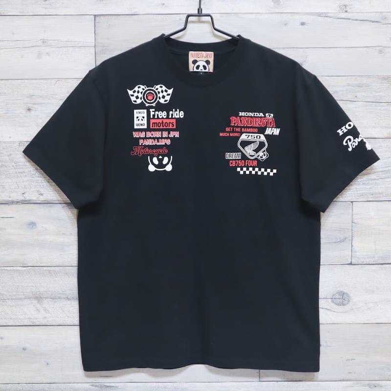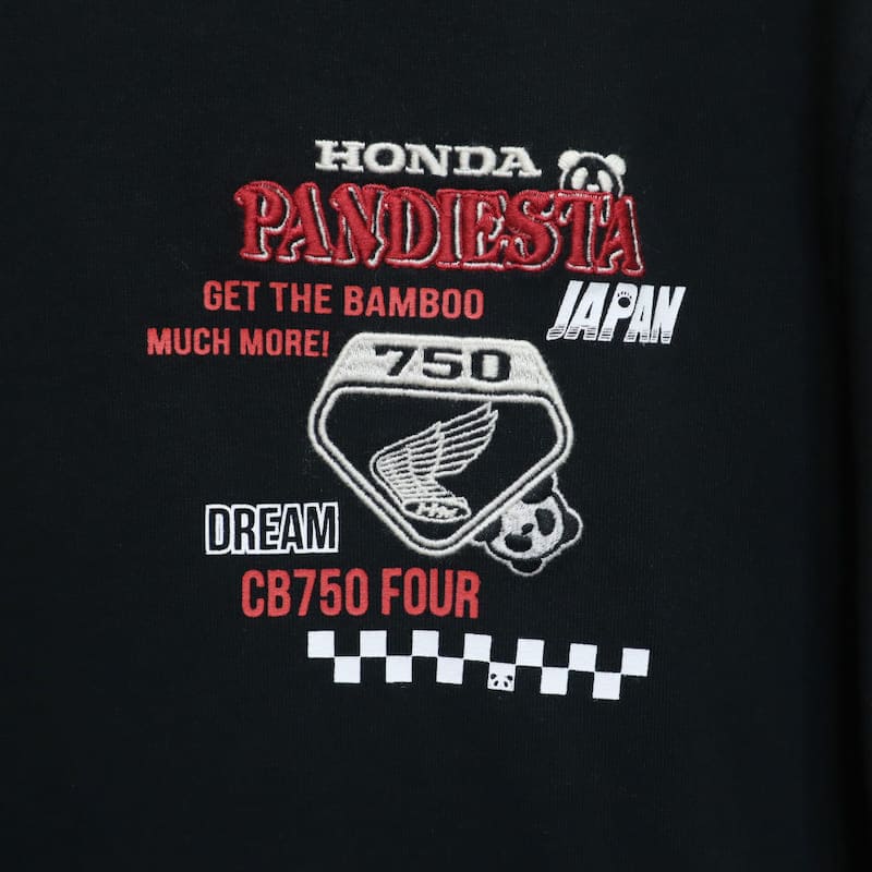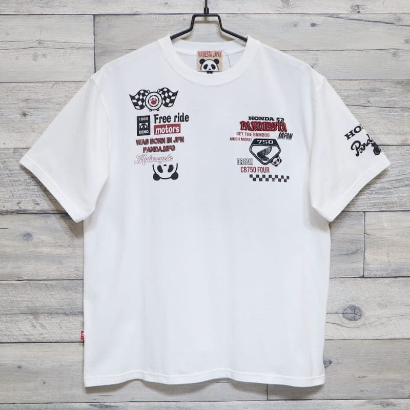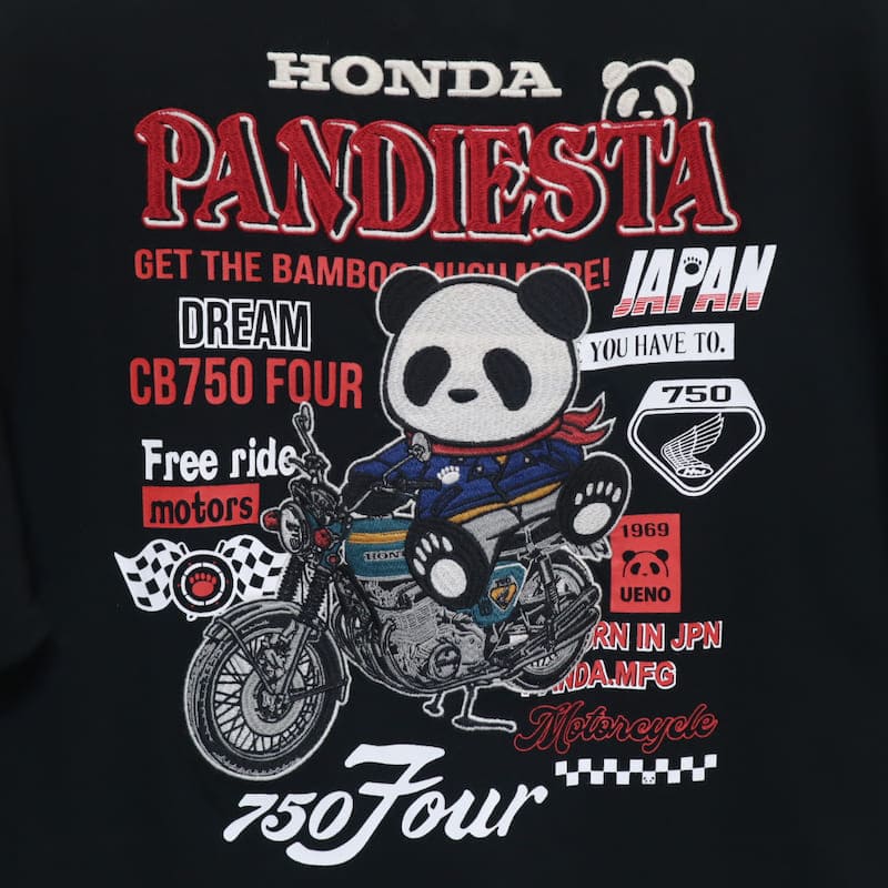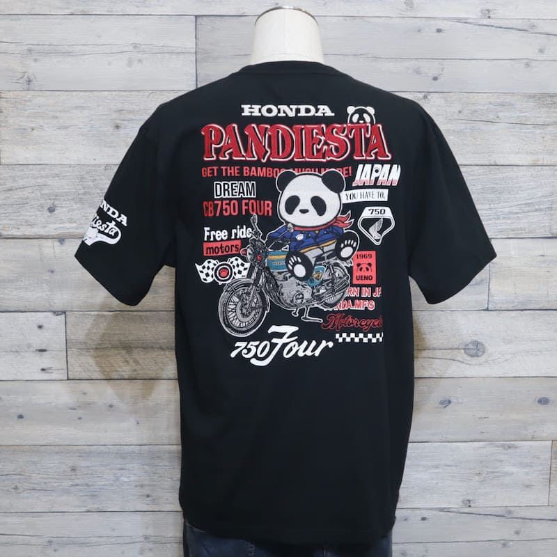 【送料無料】メンズ Honda ホンダ PANDIESTA パンディエスタ コラボ 半袖 Tシャツ 半袖Tシャツ ティーシャツ 刺繍 パンダCB750Four K0 ケーゼロ オートバイ バイク ユニセックス レディース 白 オフホワイト 黒 ブラック