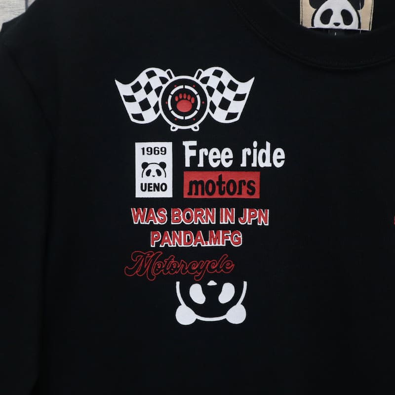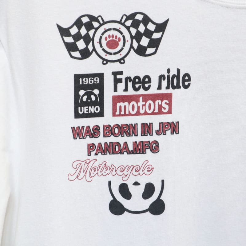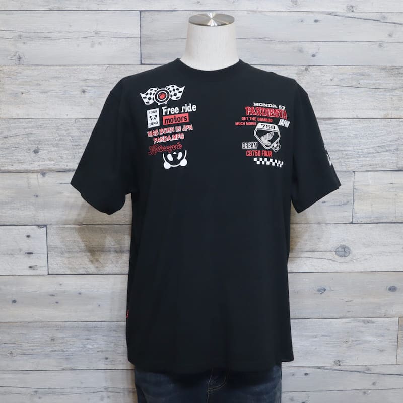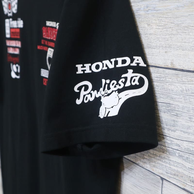 オートバイ販売台数、売上高世界首位を誇る【Honda(ホンダ)】と、かわいらしいパンダがキャラクターのブランド【PANDIESTA JAPAN (パンディエスタ ジャパン)】のコラボ半袖Tシャツです。