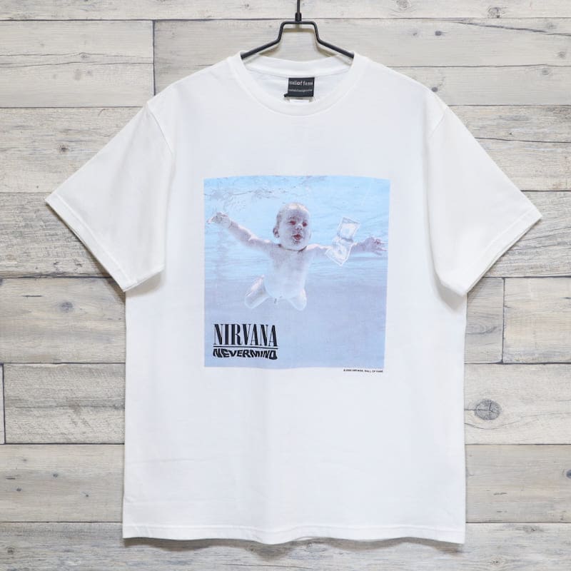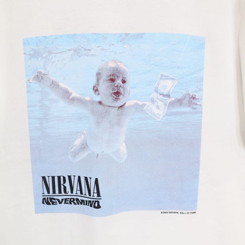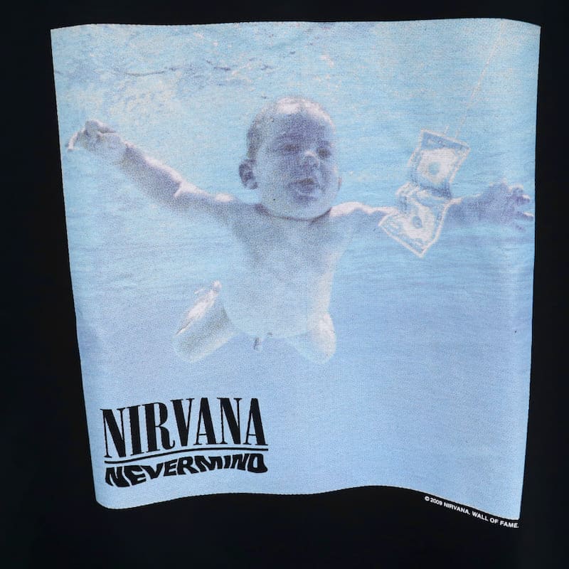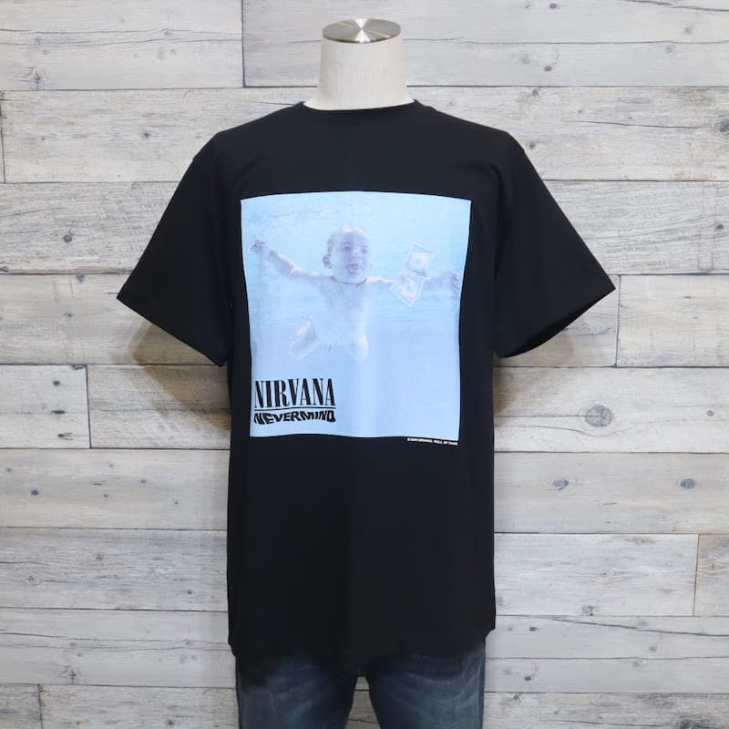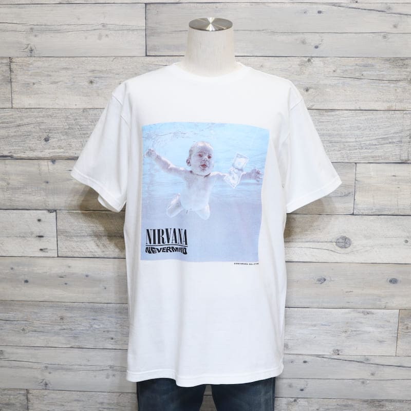 アメリカのロックバンド『ニルヴァーナ』のアルバム『ネヴァーマインド』のジャケット写真をデザインした半袖Tシャツ。