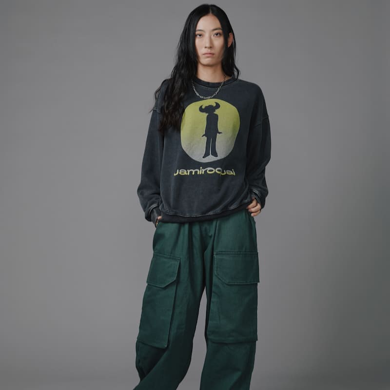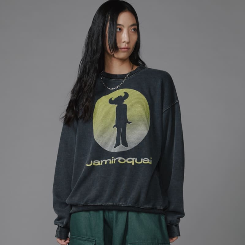 イギリス出身のアーティスト「Jamiroquai(ジャミロクワイ)」のアイコニックなバッファローマンがプリントされたスウェットトレーナー。