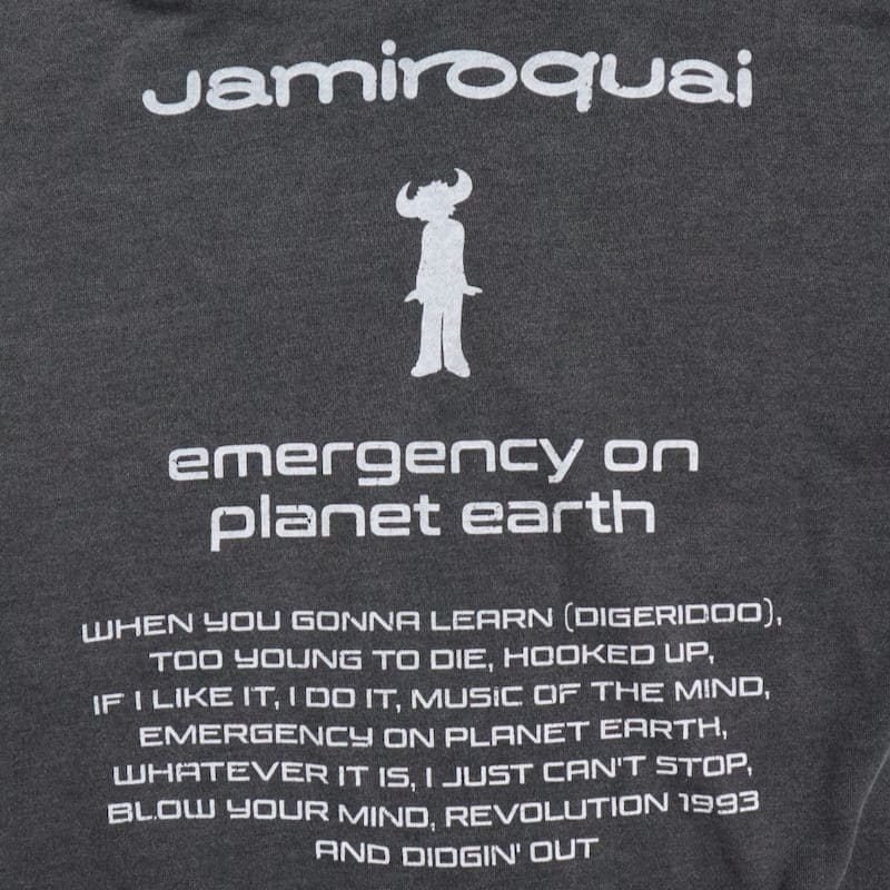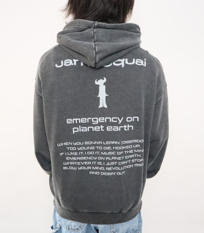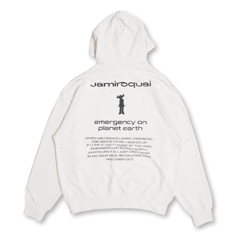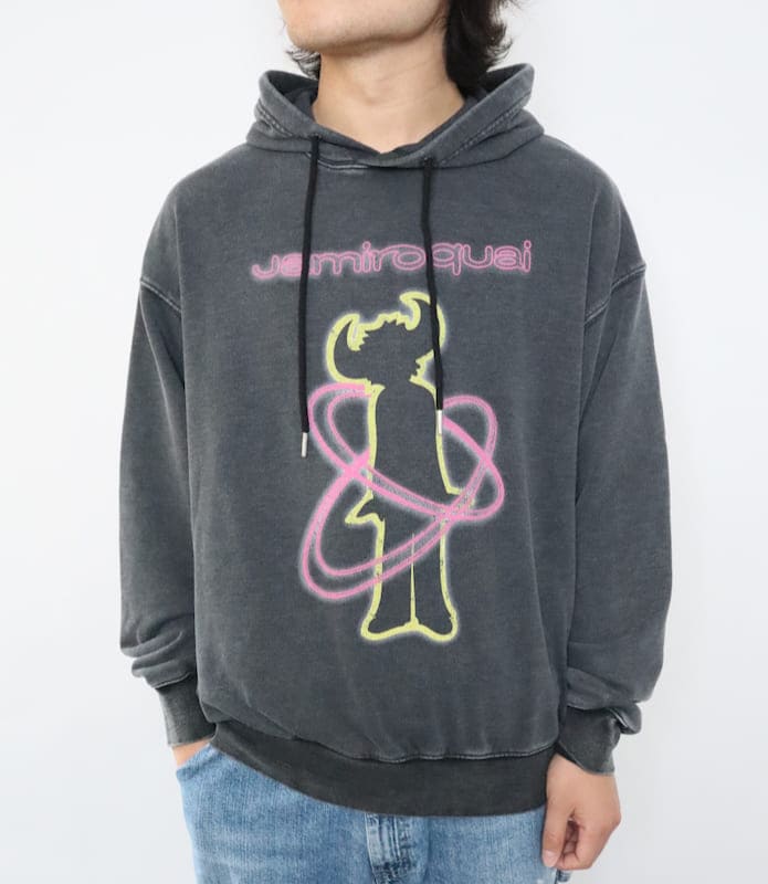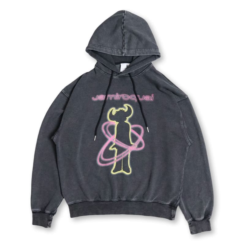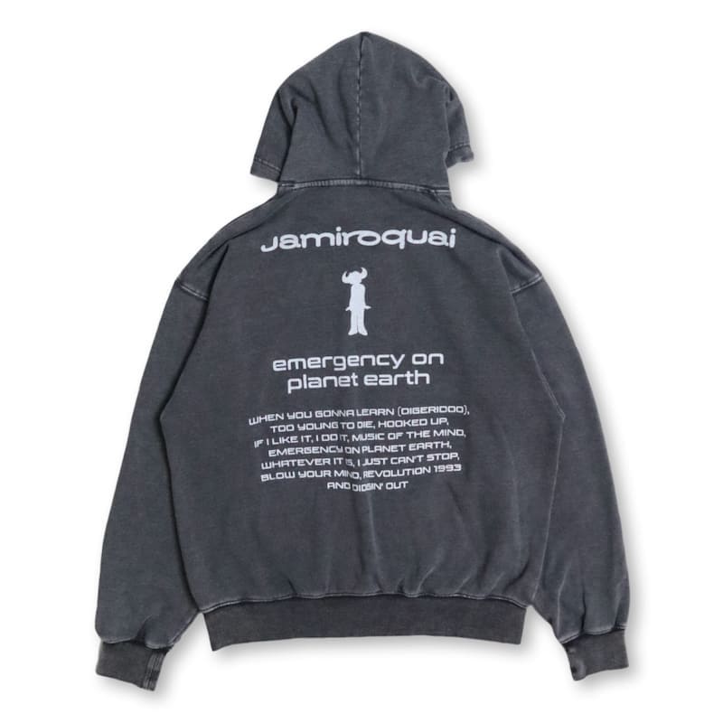イギリス出身のアーティスト「Jamiroquai(ジャミロクワイ)」のアイコニックなバッファローマンがプリントされたスウェットパーカー。