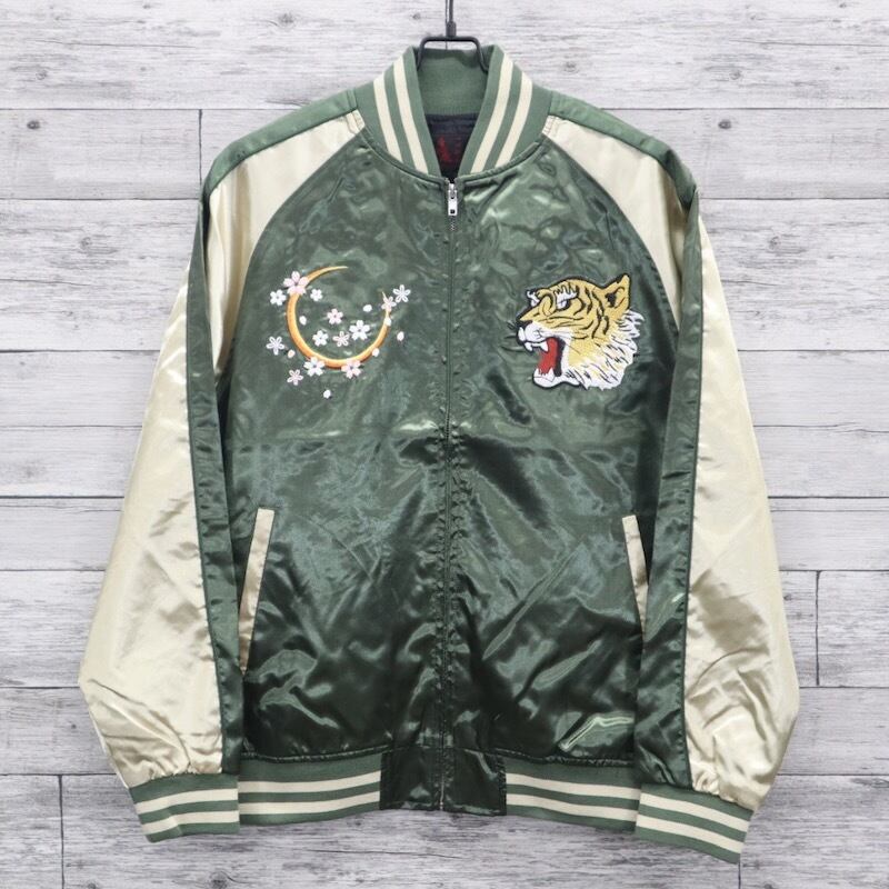 【送料無料】大きいサイズ メンズ スカジャン トラ 虎 桜 ブルゾン アウター ジャンパー スーベニア ジャケット アメカジ 和柄 日本 JAPAN ジャパン タイガー さくら 刺繍 Japanesesouvenir 一心如鏡 横須賀 3L 4L 5L キングサイズ ユニセックス レディース | DEF STORE