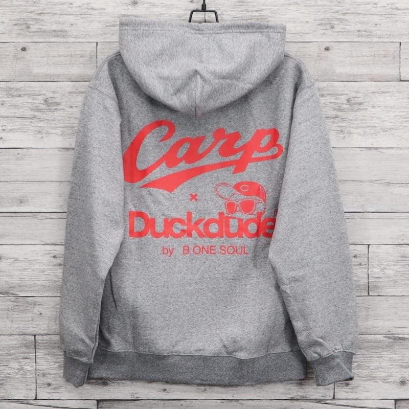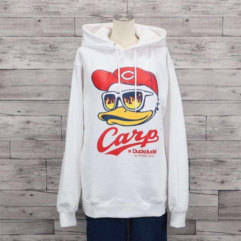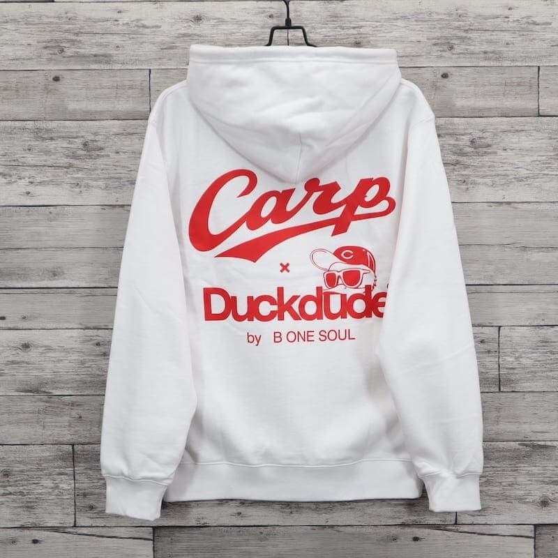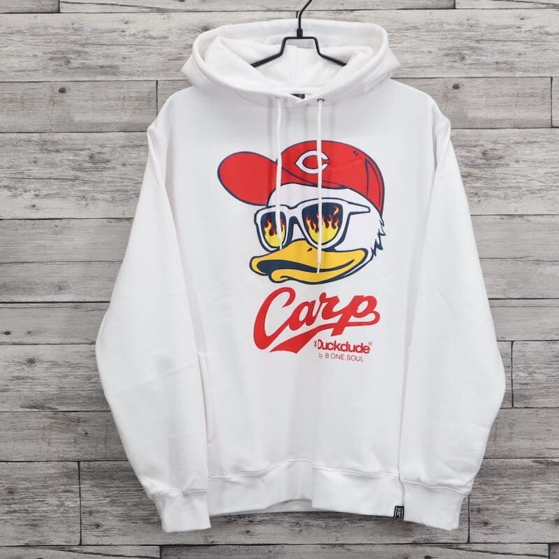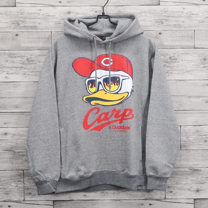 【送料無料】メンズ 広島 東洋 カープ 長袖 パーカー フーディ 裏起毛 CARP コラボ 公認 グッズ ダック デュード プリント レディース ユニセックス 野球観戦 カープ女子 応援 白 ホワイト グレー 赤 レッド | DEF STORE