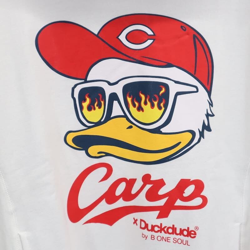 バックスタイルにもカープとダック・デュードのロゴを配置。