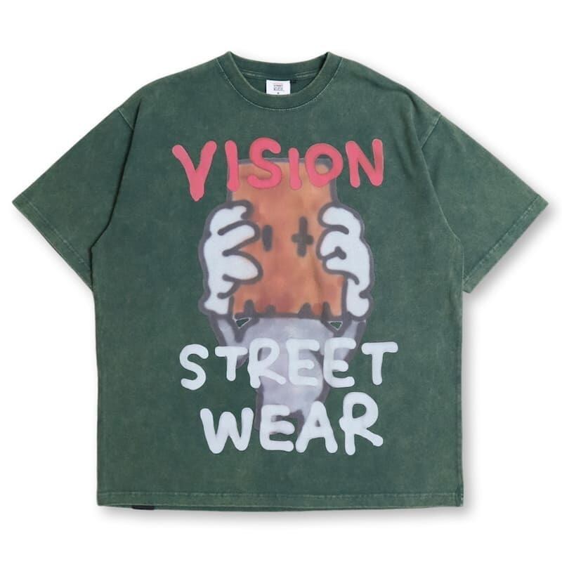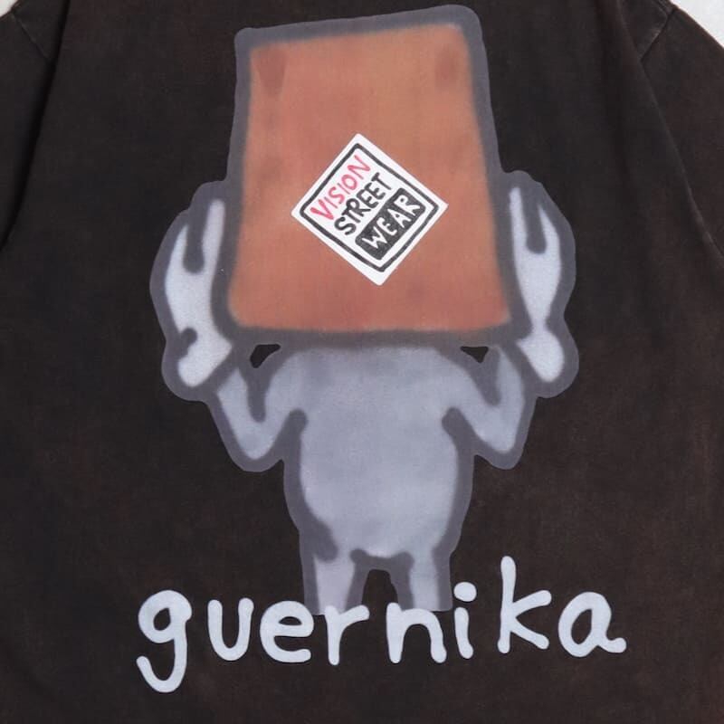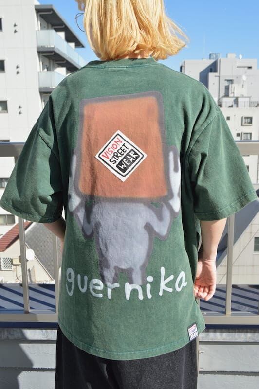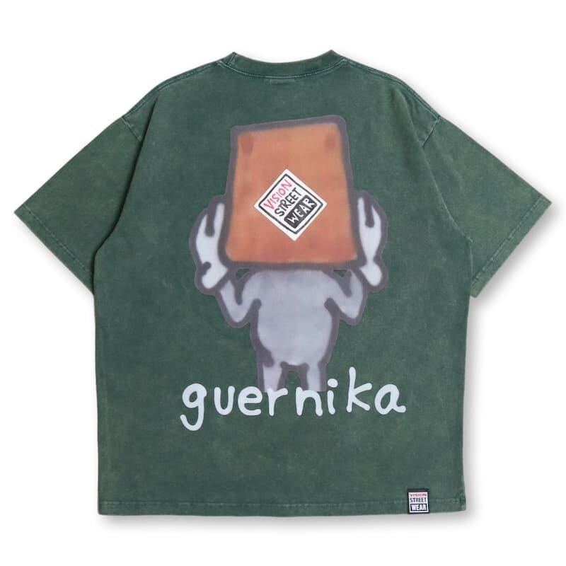 【送料無料】メンズ vision street wear ヴィジョン guernika ゲルニカ コラボ 半袖 Tシャツ 半袖Tシャツ ティーシャツ アノニマウス イラスト プリント ウォッシュ加工 オーバーサイズ ユニセックス レディース 白 ホワイト 緑 グリーン 黒 ブラック | DEF STORE