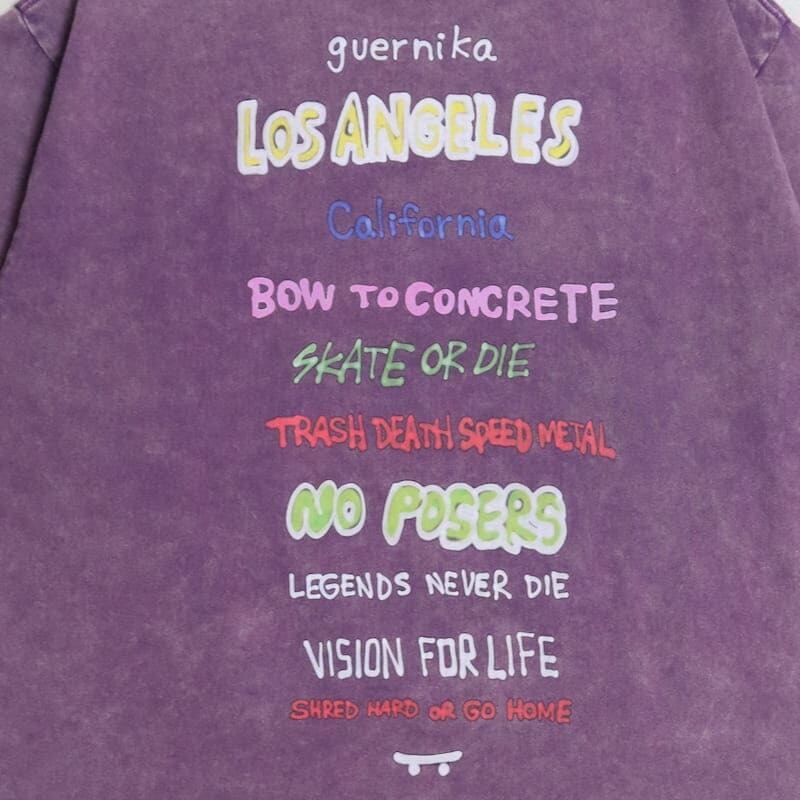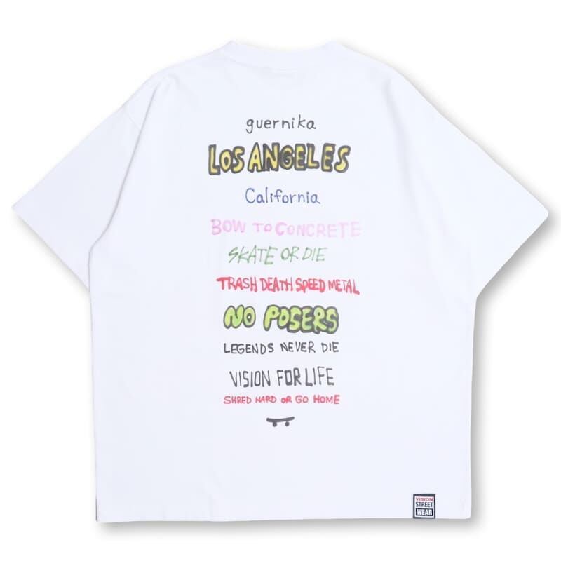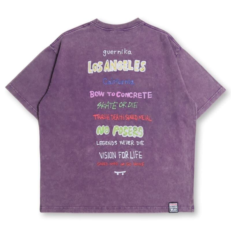 【送料無料】メンズ vision street wear ヴィジョン guernika ゲルニカ コラボ 半袖 Tシャツ 半袖Tシャツ ティーシャツ ゴースト スケーター イラスト プリント ウォッシュ加工 オーバーサイズ ユニセックス レディース 白 ホワイト 紫 パープル 黒 ブラック | DEF STORE