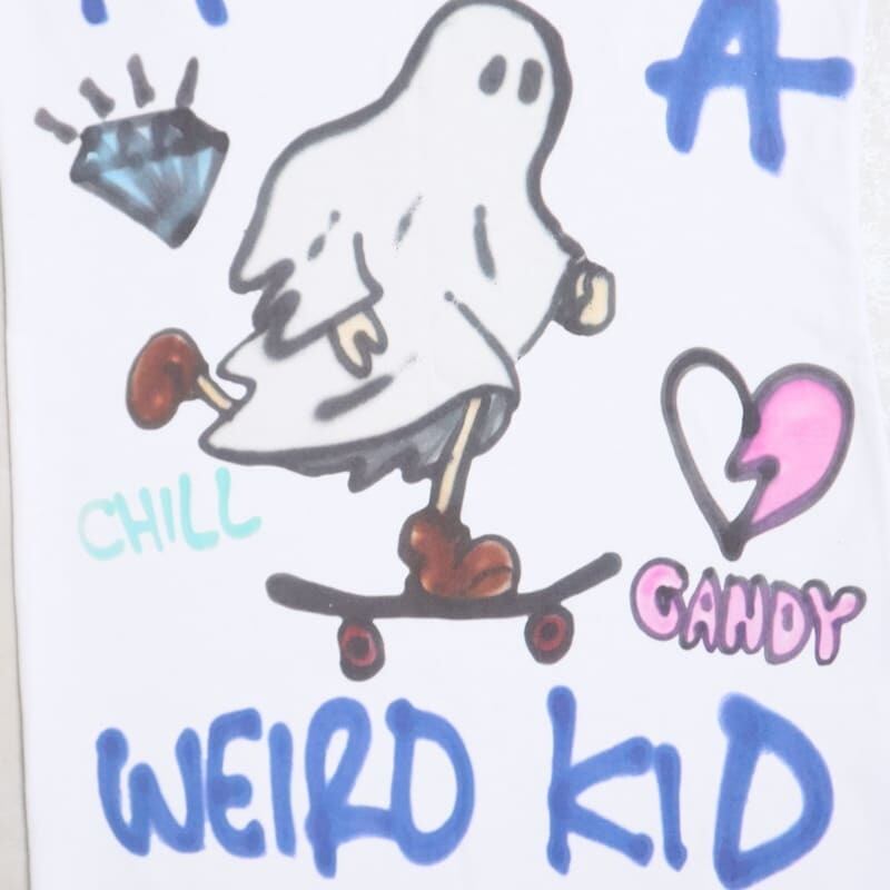 ヴィジョンで人気の「ゴーストスケーター」をゲルニカタッチで描いたコラボならではのデザイン。