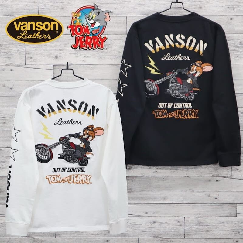 【送料無料】メンズ トムとジェリー VANSON バンソン コラボ 長袖 Tシャツ ロンT ティーシャツ バイク 刺繍 プリント レディース ユニセックス キャラクター グッズ Tom&jerry トムジェリ 白 オフホワイト 黒 ブラック | DEF STORE