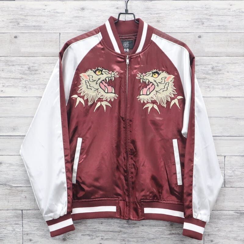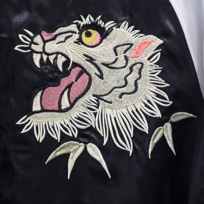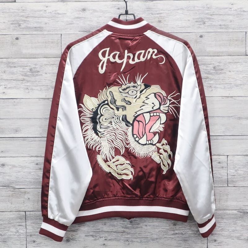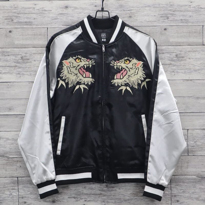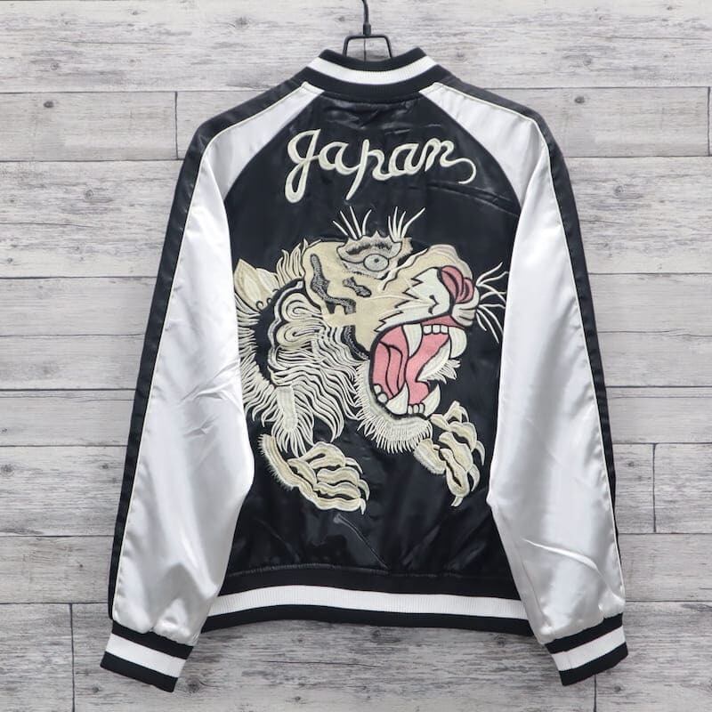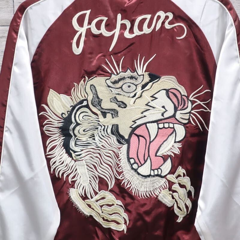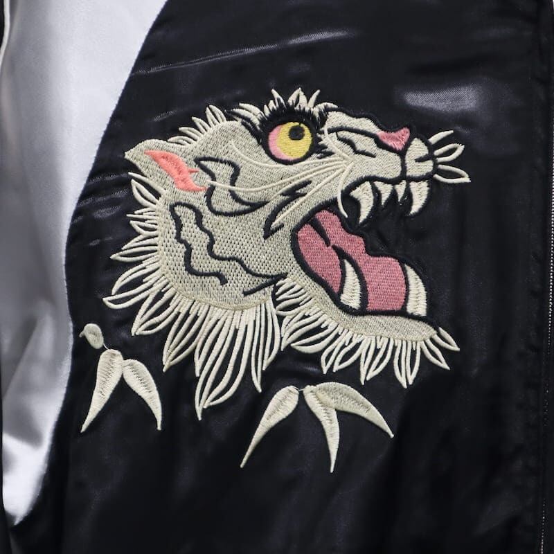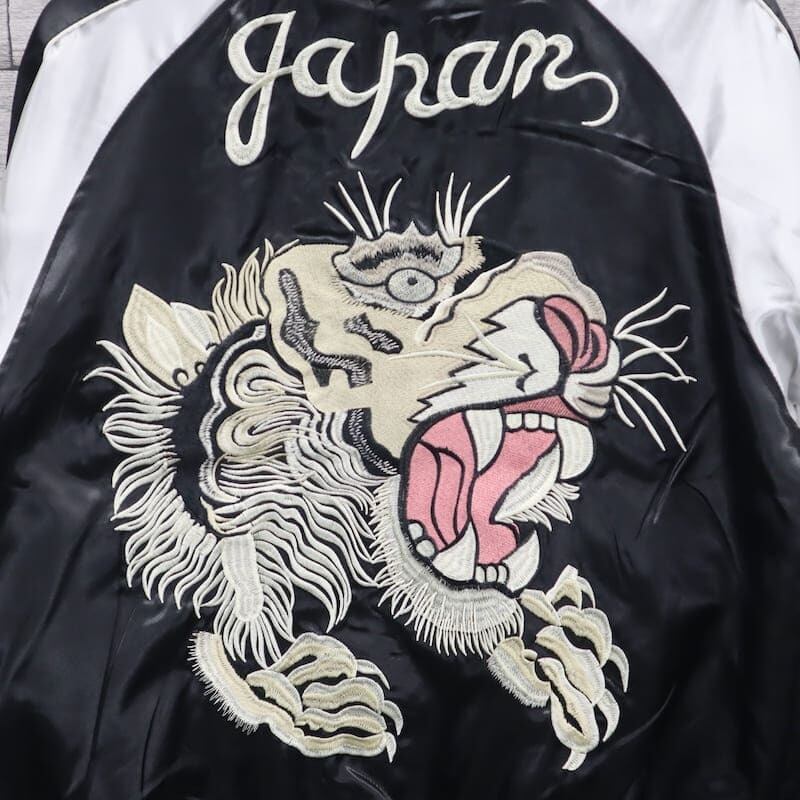 レトロタッチでヴィンテージ風に仕上げた虎をバックに大胆に刺繍した希少な1着。