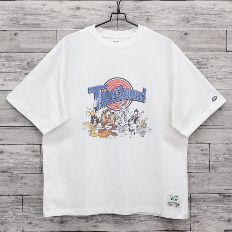 ワーナーブラザースの名作コメディ映画「スペース・ジャム」と人気アメカジブランド「DISCUS ATHLETIC」のコラボ半袖Tシャツ。