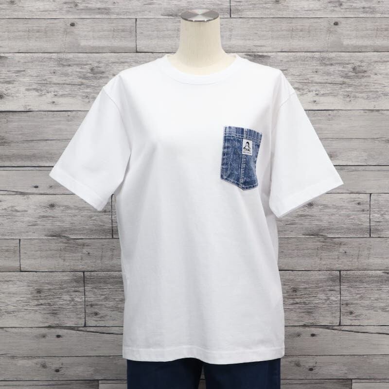 ヴィンテージライクなデニムにモノトーンのピスネームを配置した胸ポケットがポイント。