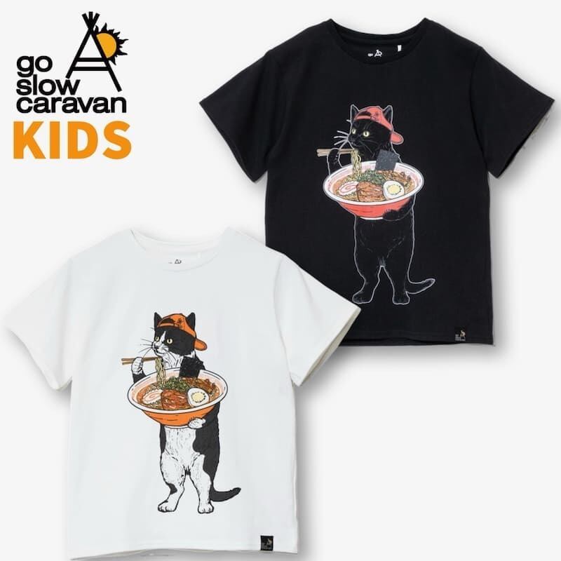 キッズ ゴースローキャラバン go slow caravan 半袖 Tシャツ ティーシャツ 中華そば ラーメン ネコ 猫 ねこ 黒猫 ハチワレ ユニセックス 男の子 女の子 白 ホワイト 黒 ブラック 100 120 140 | DEF STORE