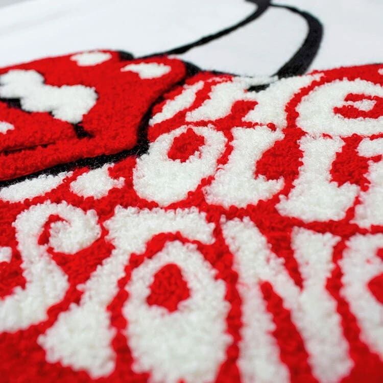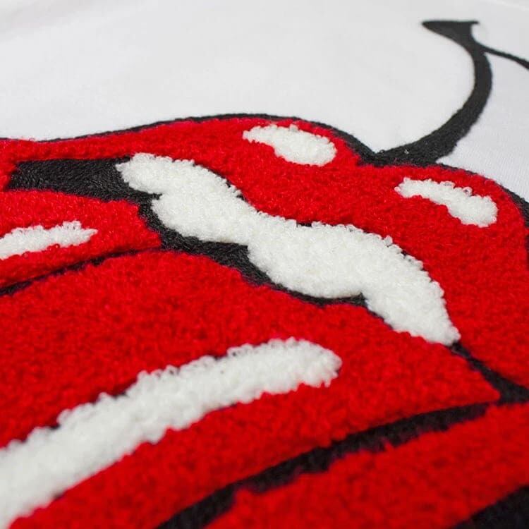 チェリーとリップス&タンをサガラ刺繍で仕上げた贅沢な1枚。
