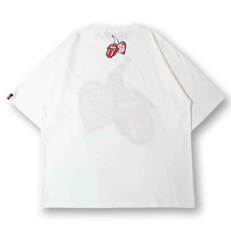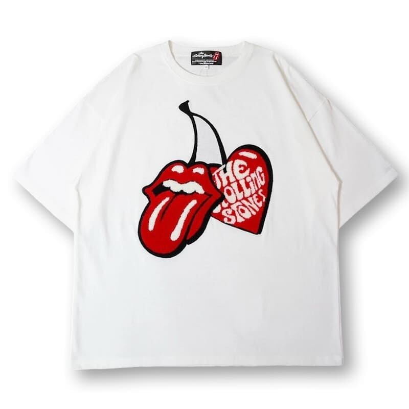 【送料無料】メンズ THE ROLLING STONES ローリングストーンズ JACKROSE ジャックローズ コラボ 半袖 Tシャツ ティーシャツ チェリー LIPS&TAN サガラ 刺繍 オーバーサイズ ビッグシルエット ユニセックス 白 ホワイト 黒 ブラック | DEF STORE