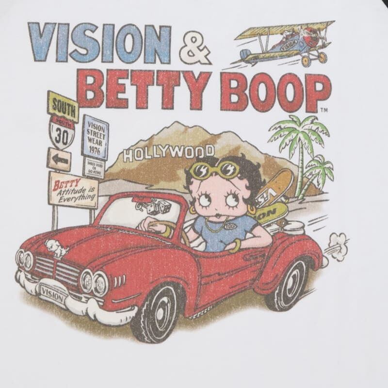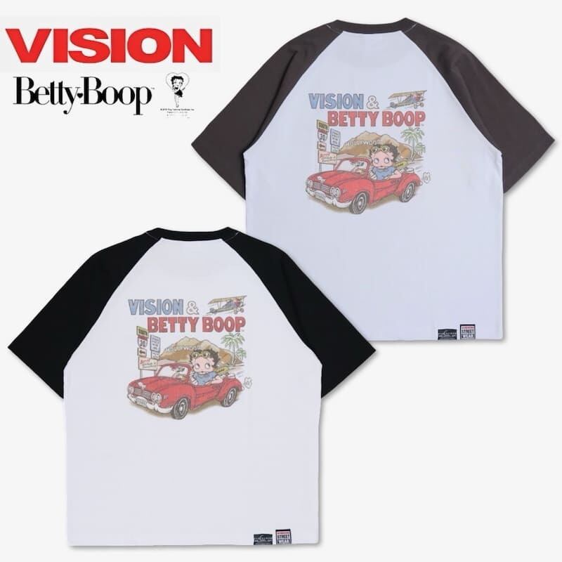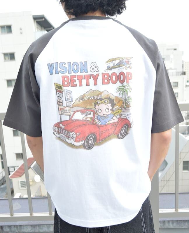 【送料無料】メンズ vision street wear ヴィジョン ベティ・ブープ BETTY BOOP コラボ 半袖 Tシャツ 半袖Tシャツ ティーシャツ ラグラン プリント ベティー ベティちゃん キャラクター グッズ レディース ユニセックス | DEF STORE