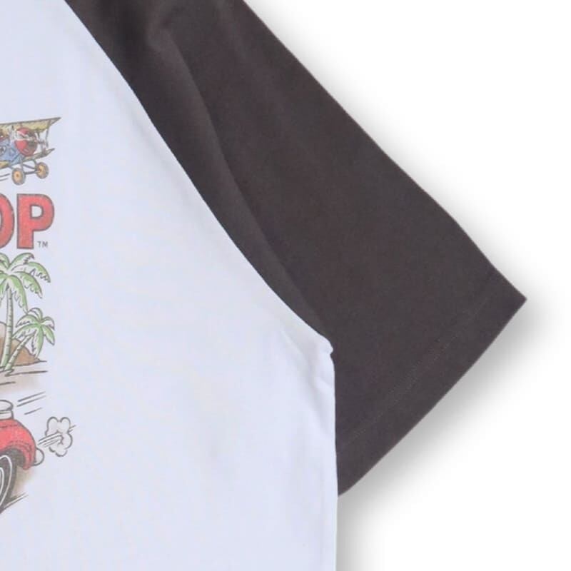 スケボーを車に乗せたベティーちゃんの描きおろしイラストがポイントのラグランTシャツ。