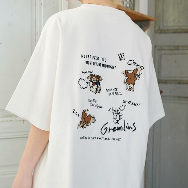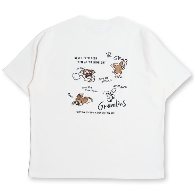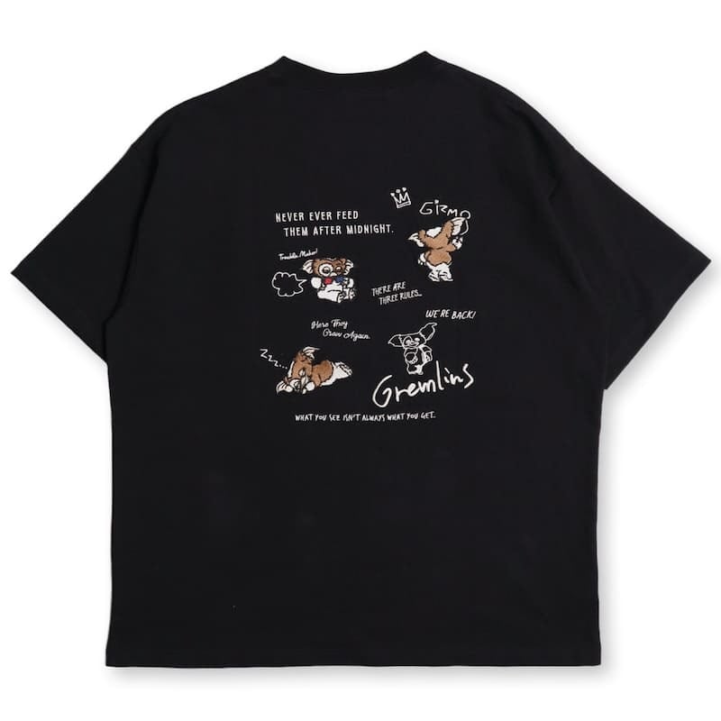 【送料無料】メンズ グレムリン ギズモ 刺繍 半袖 Tシャツ ティーシャツ 映画 キャラクター グッズ レディース ユニセックス オーバーサイズ ワイドシルエット 白 ホワイト 黒 ブラック