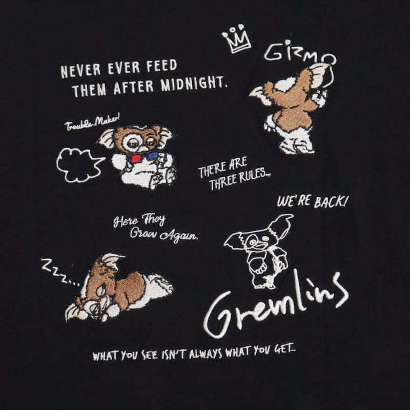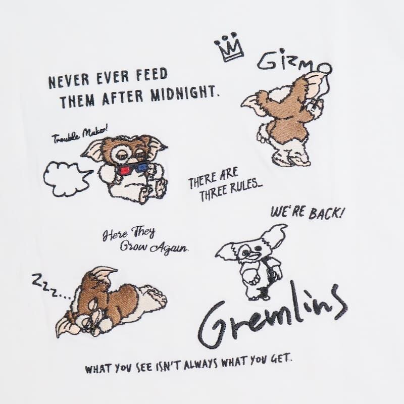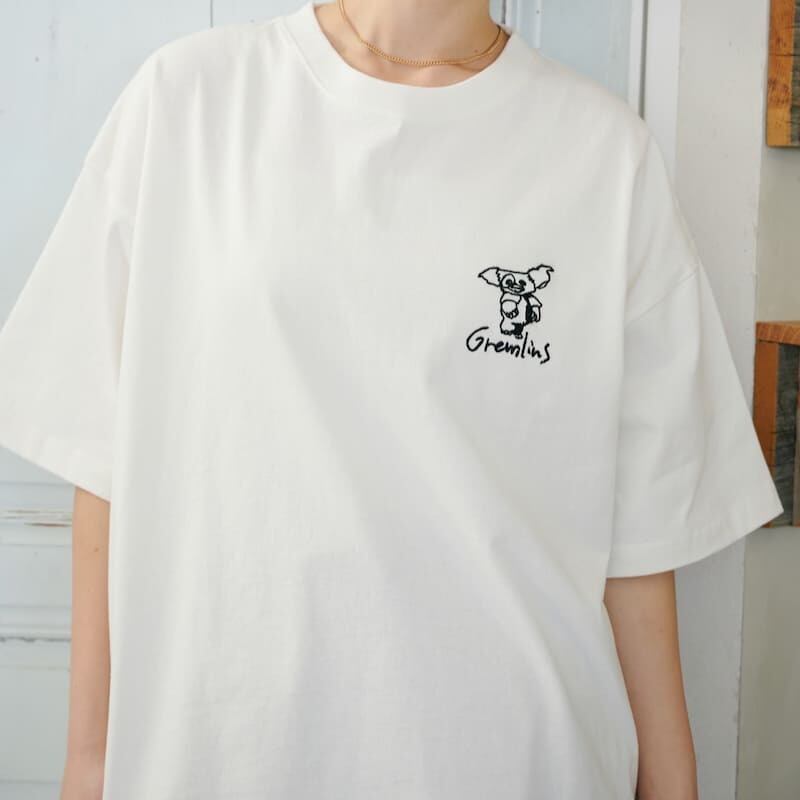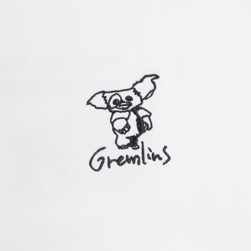 映画『グレムリン』のギズモの可愛らしい姿を総刺繍でデザインした半袖Tシャツ。