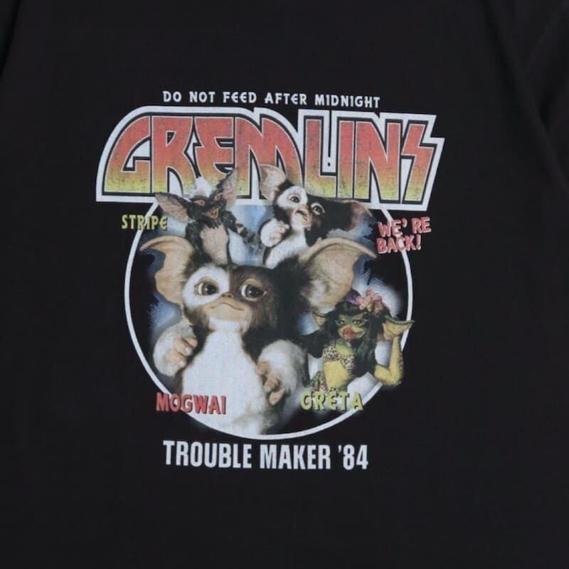 映画『グレムリン』のギズモのロゴとフォトを組み合わせたグラフィックTシャツ。
