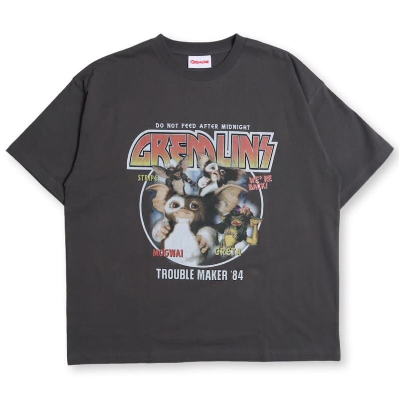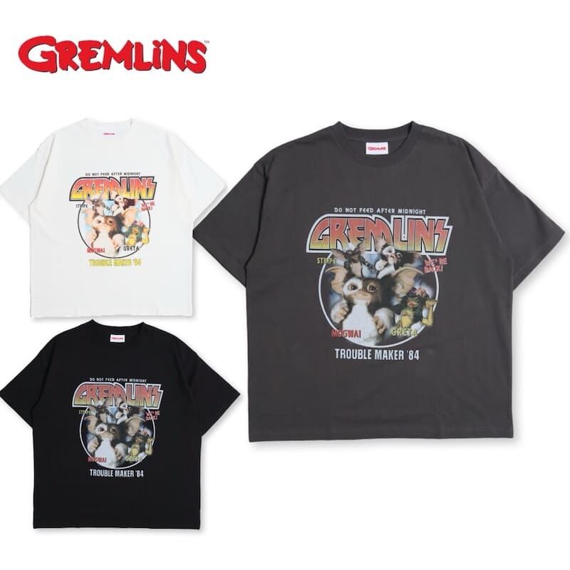 【送料無料】メンズ グレムリン ギズモ 半袖 Tシャツ ティーシャツ プリント サークルロゴ 映画 キャラクター グッズ レディース ユニセックス オーバーサイズ ワイドシルエット 白 ホワイト チャコール グレー 黒 ブラック | DEF STORE