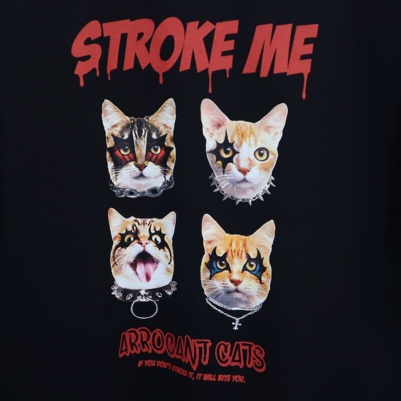 かっこいいメイクに反して、「撫でて」「遊んで」と書かれたロゴがネコちゃんワンちゃん好きにはたまらないデザインです。