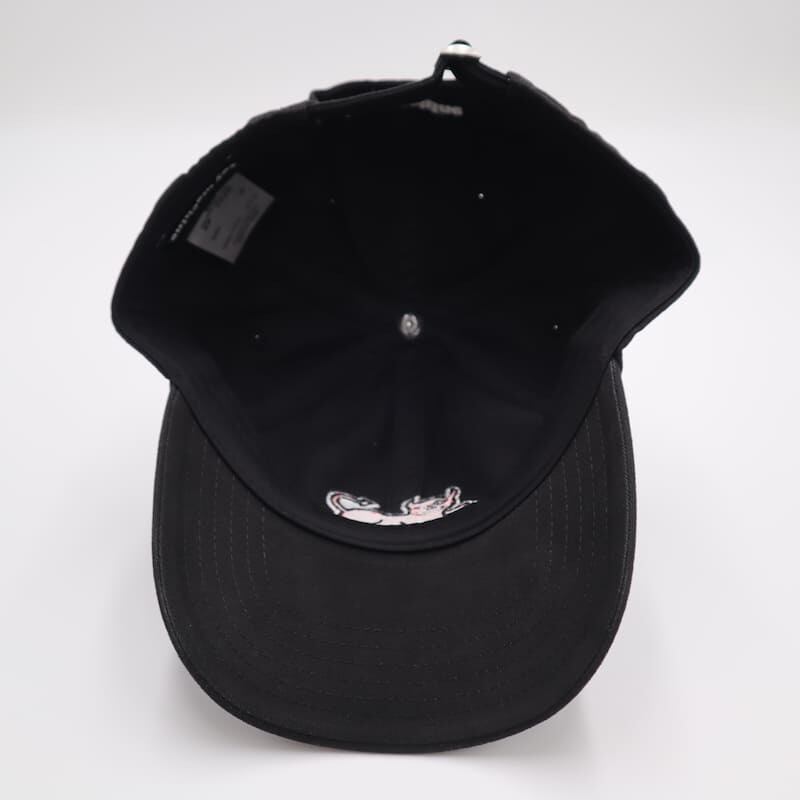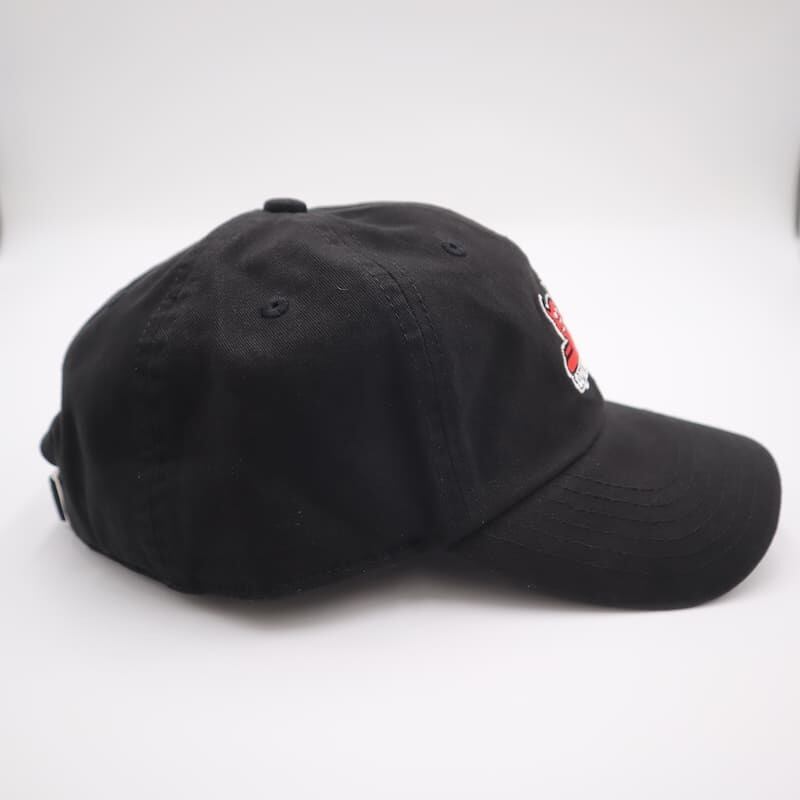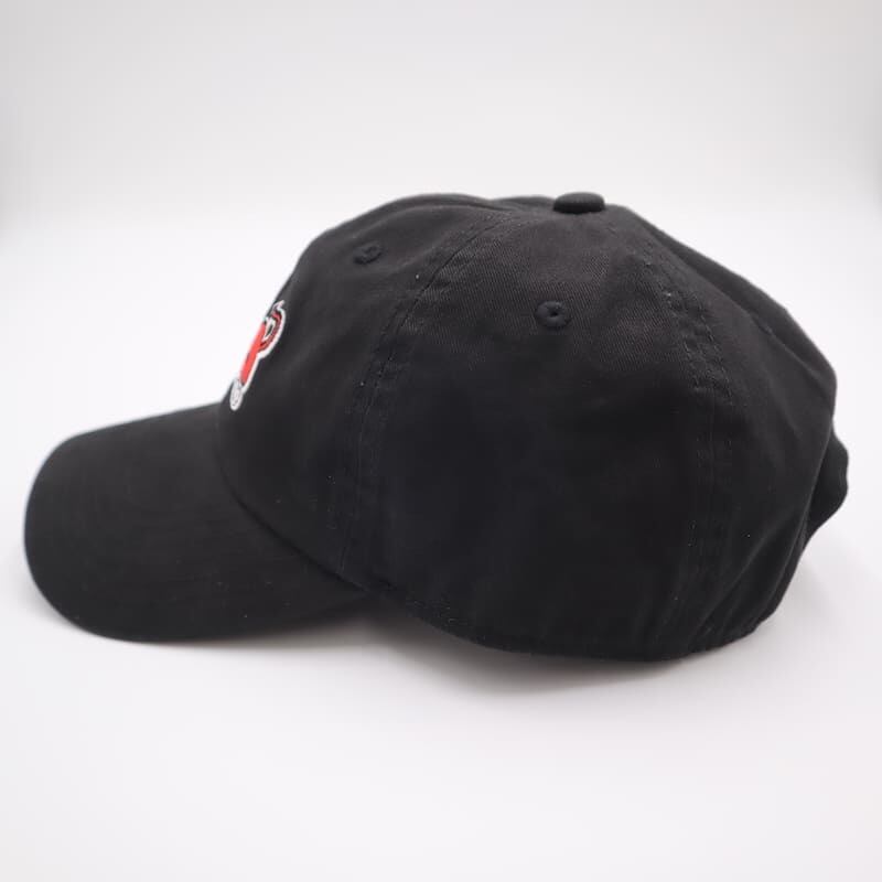 デビルキャットの刺繍が目をひくローキャップです。
