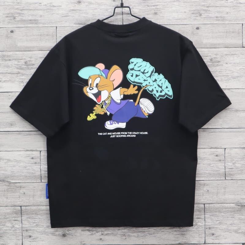 B-BOYコーデでオシャレに決めたトムとジェリーをバックプリントしたデザイン。