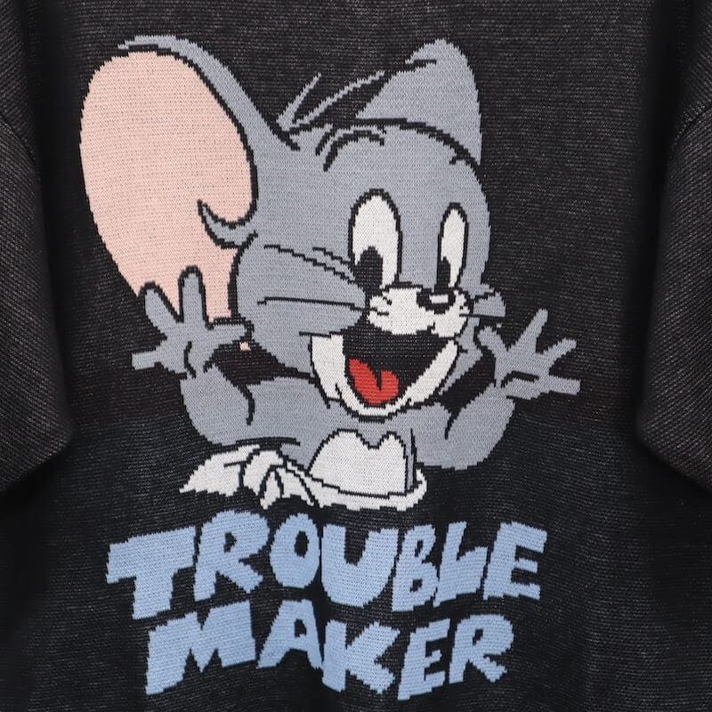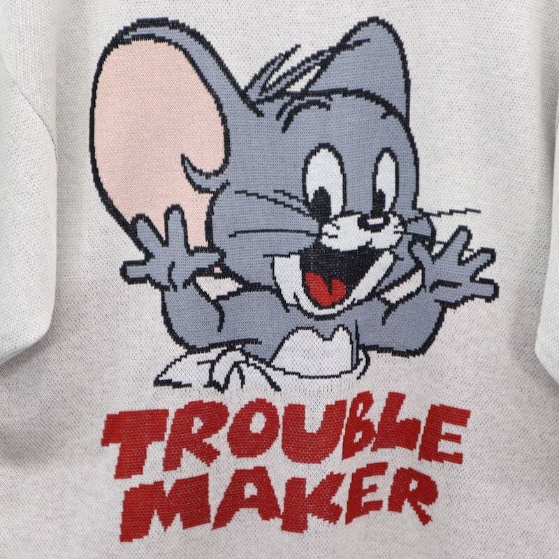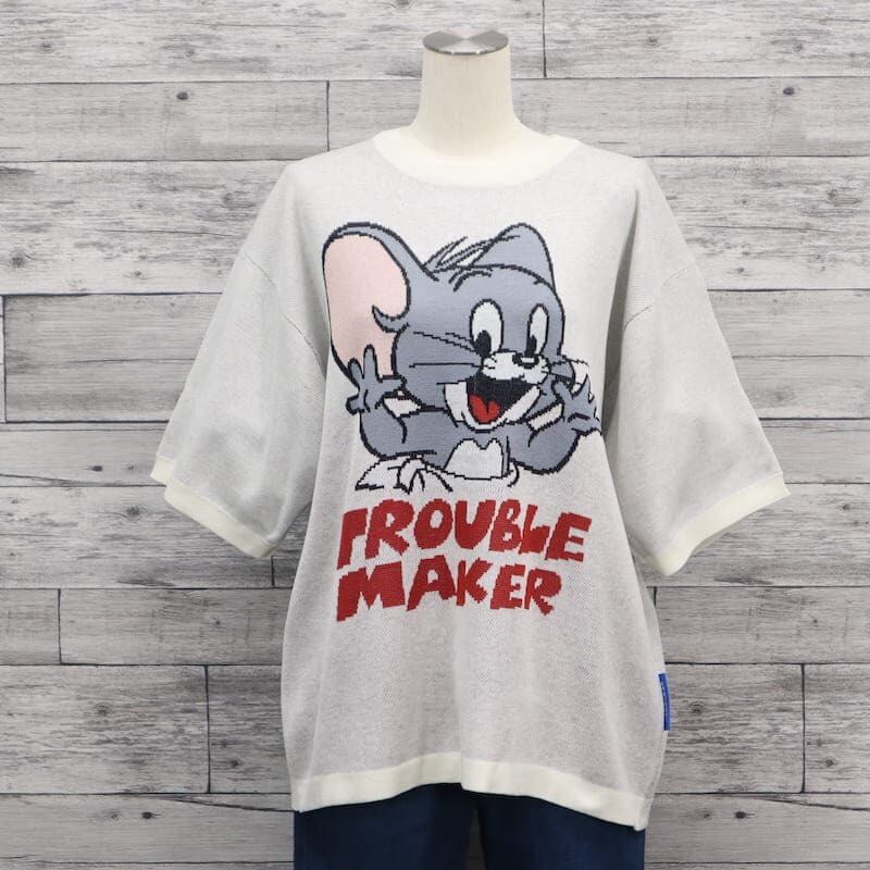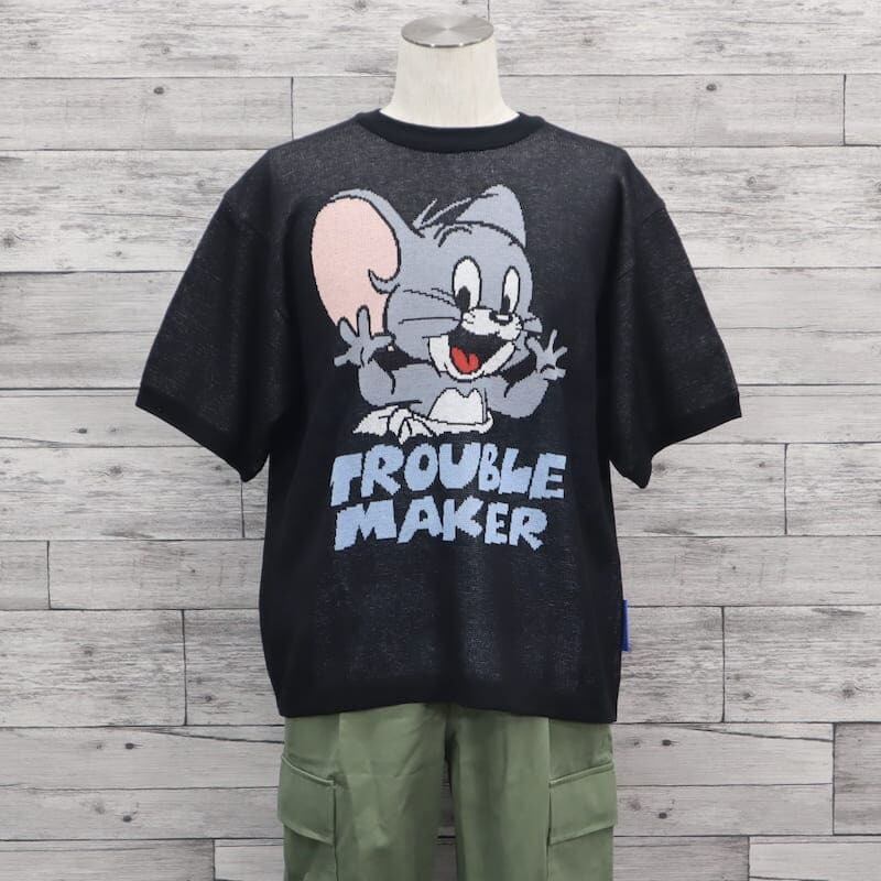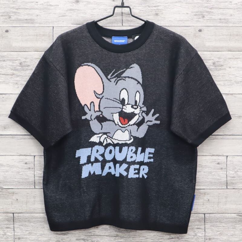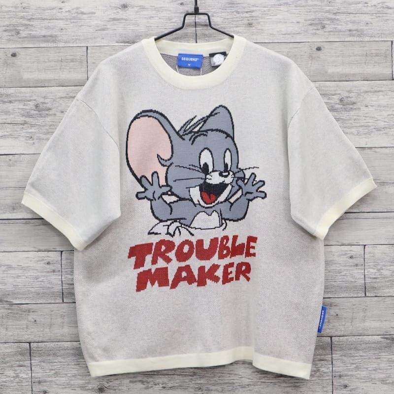 【送料無料】メンズ トムとジェリー TOM&JERRY トムジェリ SEQUENZ シークエンズ コラボ 半袖 サマーニット ジャガード ニット セーター タフィー タフィ ニブルス ユニセックス レディース 白 ホワイト アイボリー 黒 ブラック | DEF STORE